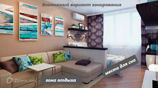 ГОСТИНАЯ - 13,6 - м2 с зоной для отдыха и сна, системой хранения,