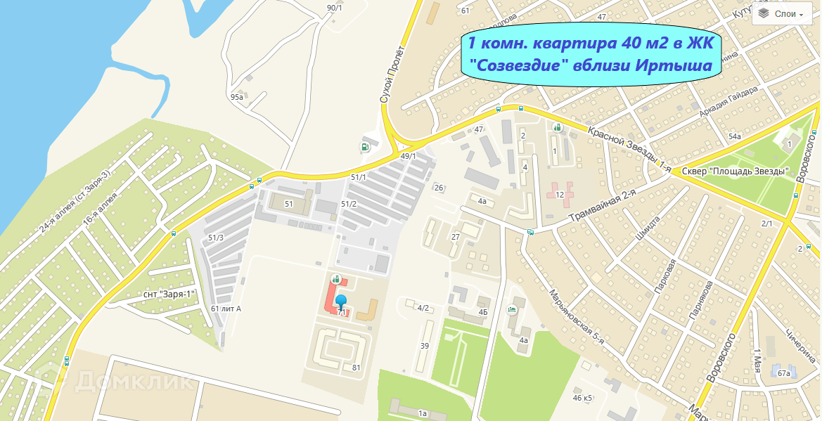 ВБЛИЗИ ИРТЫША и СКВЕРА ПЛОЩАДЬ ЗВЕЗДЫ
