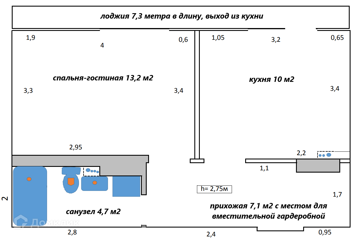 Высота потолков 2,75 метров