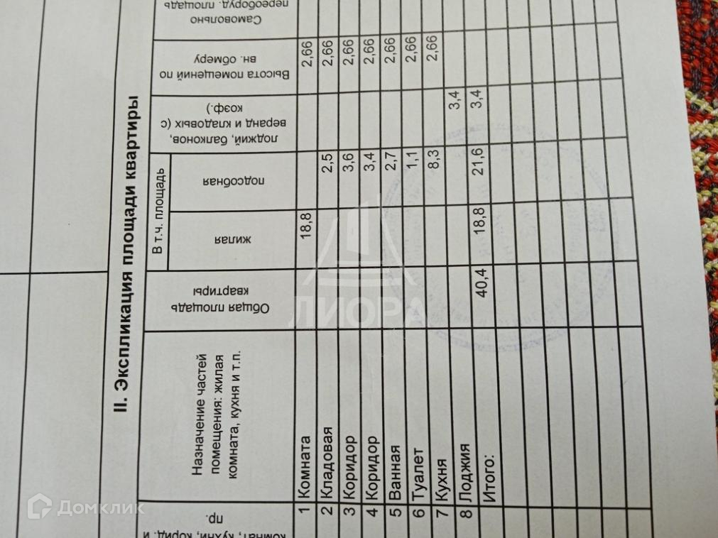 Общая площадь 40.4 м2