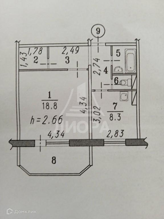 1-комнатная квартира, 40.4 м2, этаж 3 / 10, на продажу в Омске, улица Димитрова, 67