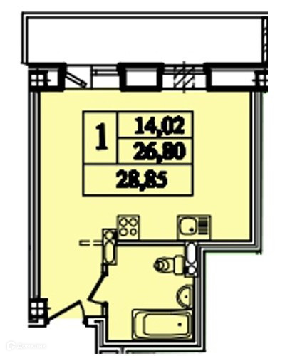Общая площадь 28.8 м2