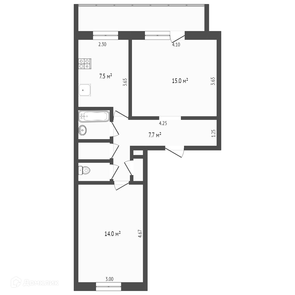 Площадь кухни 7.5 м2