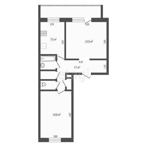 Общая площадь 47.8 м2