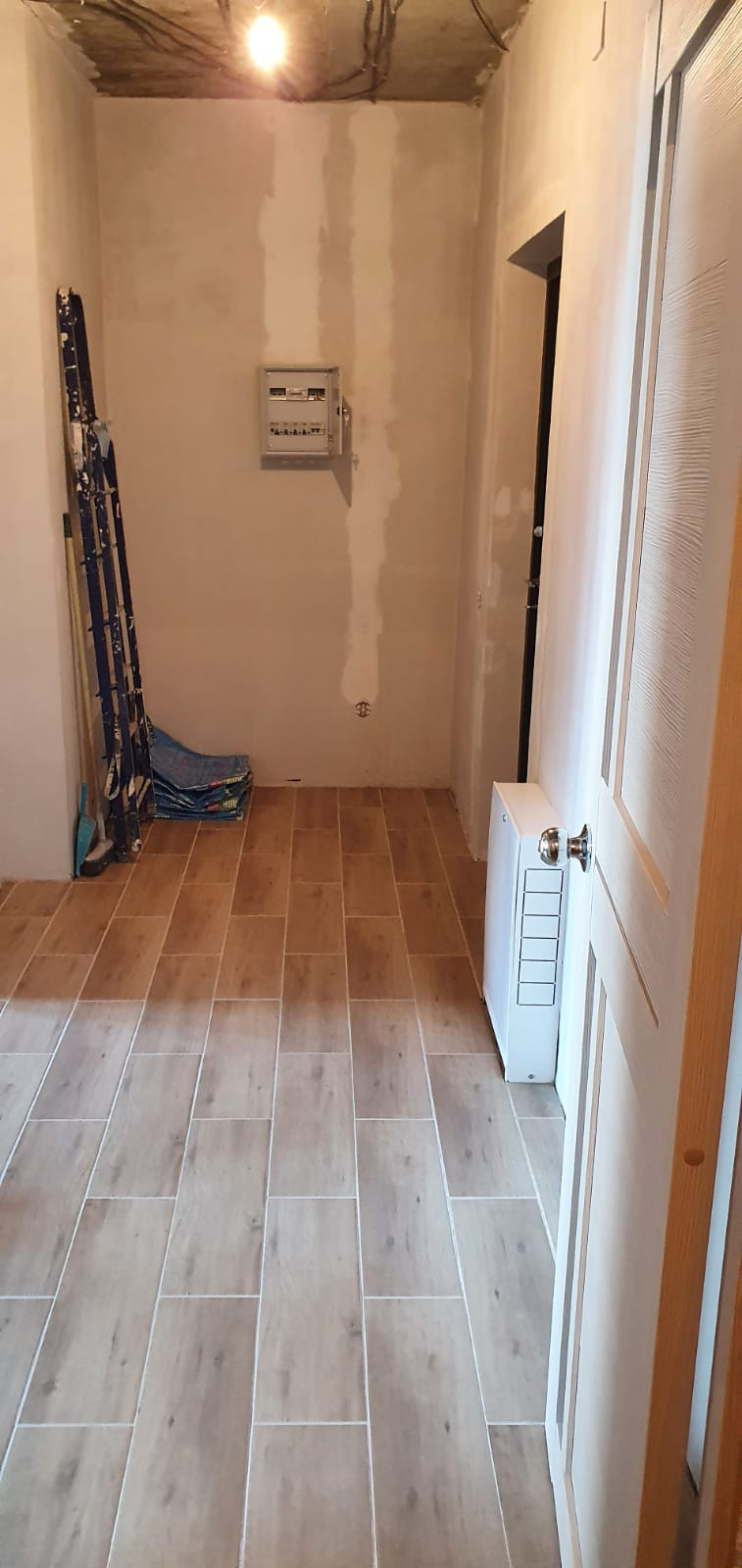 В квартире выполнен частично ремонт - ванная комната в кафеле, установлены приборы учета воды, тепла и электроэнергии, на полу плитка и ламинат, установлены межкомнатные двери, стены подготовлены под обои, окна ПВХ. Большая лоджия - 9 кв .м.