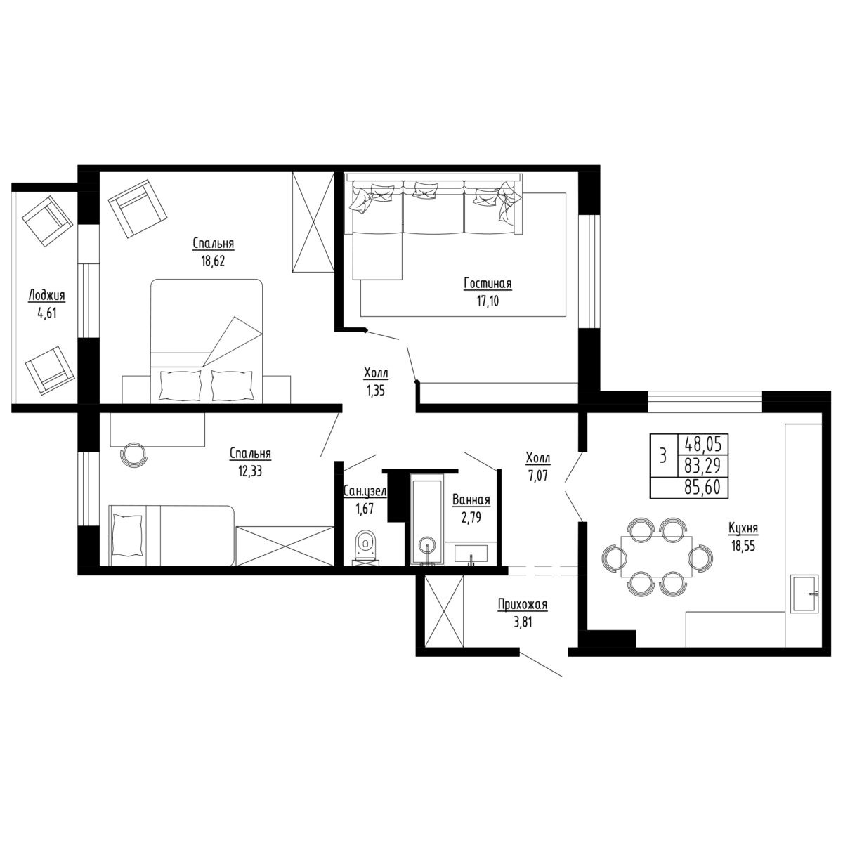 Общая площадь 85 м2