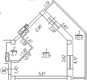 Общая площадь 29.6 м2