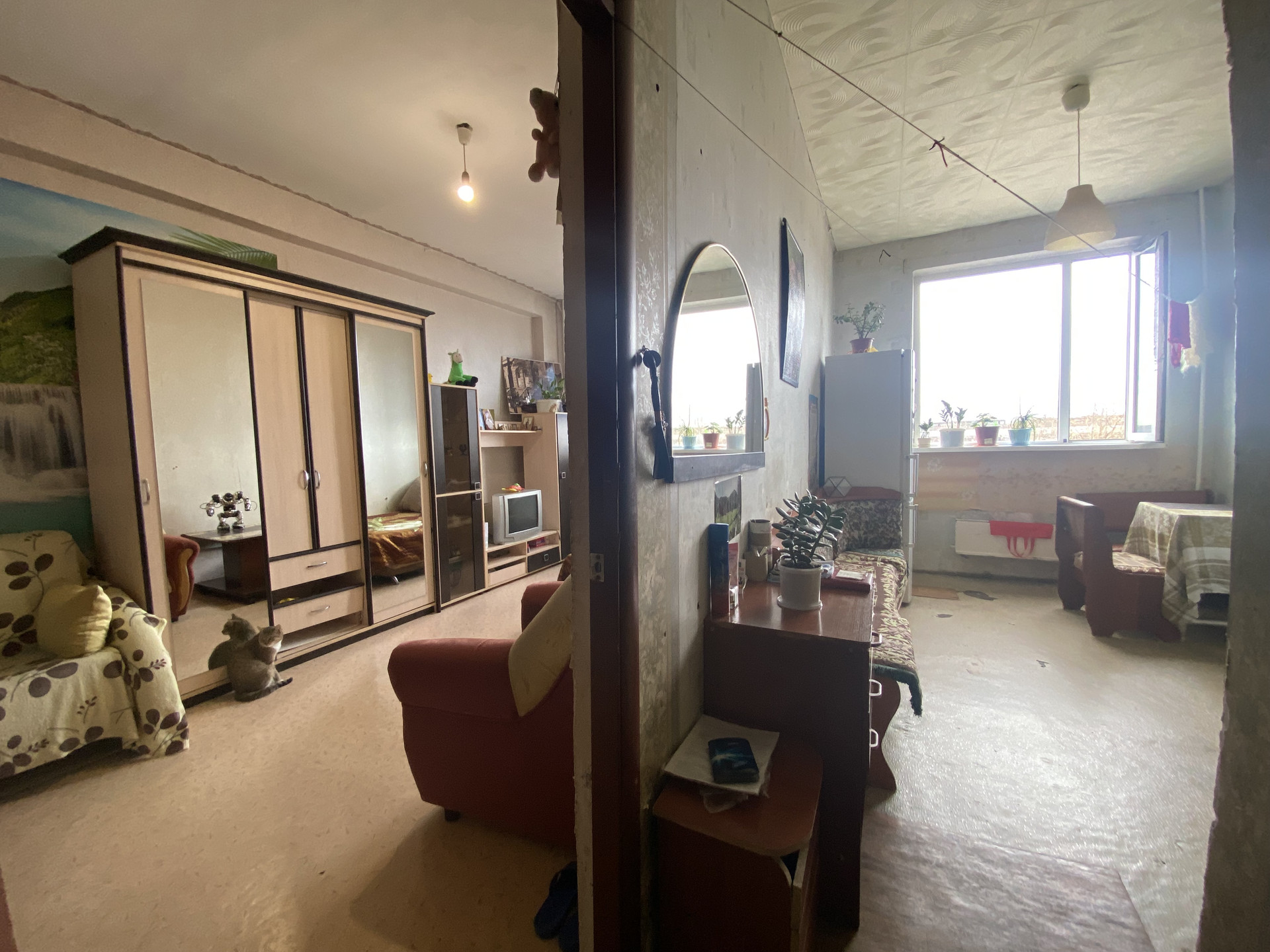 1 комнатная квартира 35.1 кв.м. Туалет и ванная совмещены. Большая кухня  10,9 кв.м. Жилая комната 18,8 кв.м. Высокие потолки 2,95 м. Без балкона.