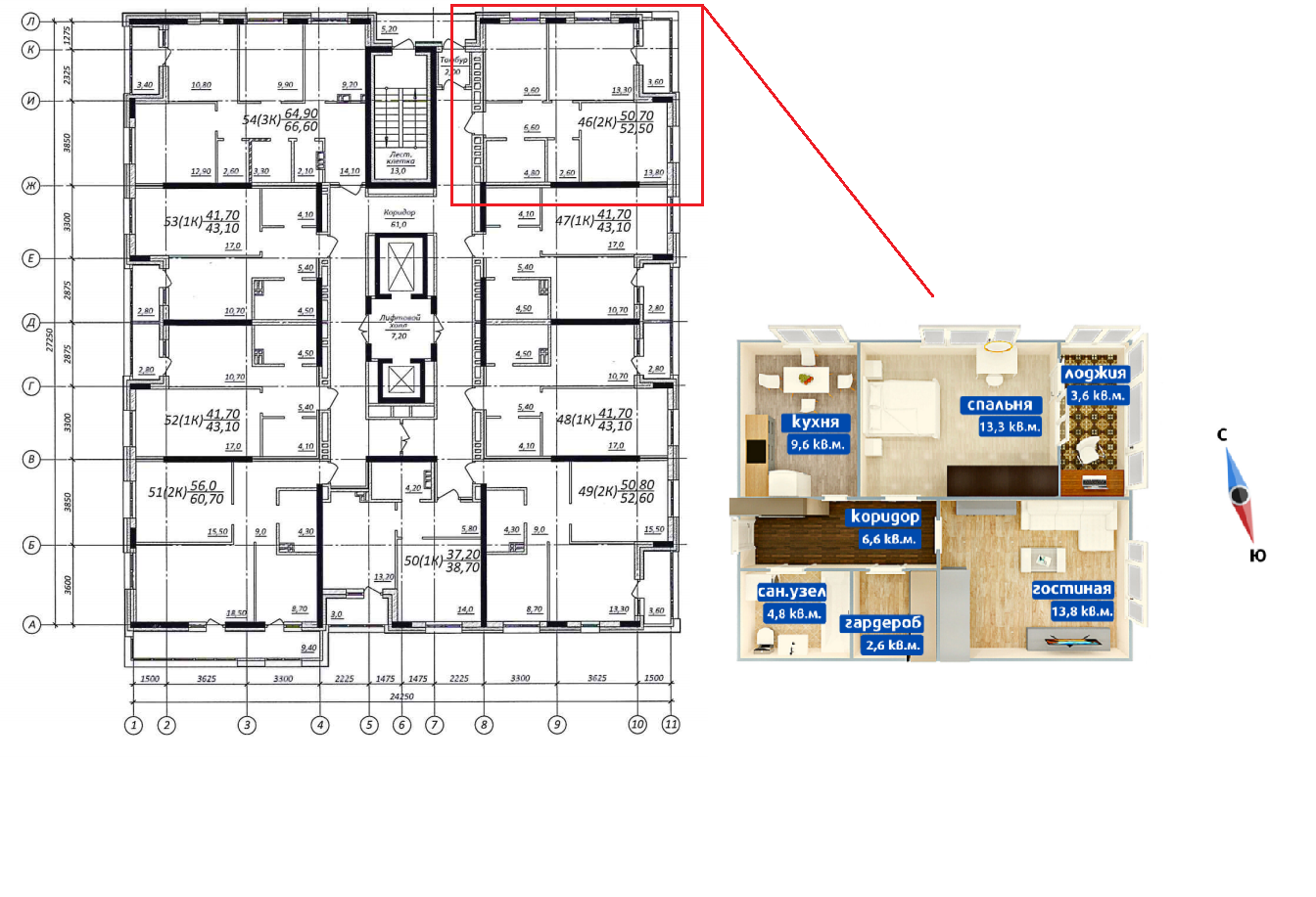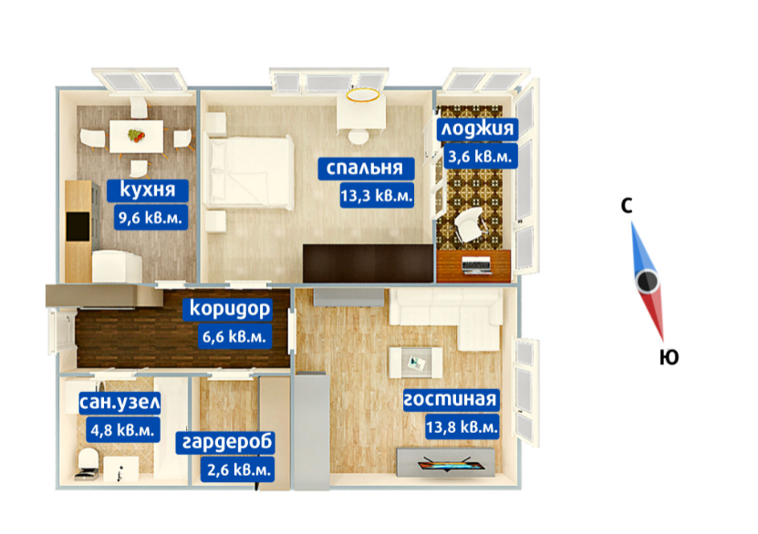 Общая площадь 54.2 м2