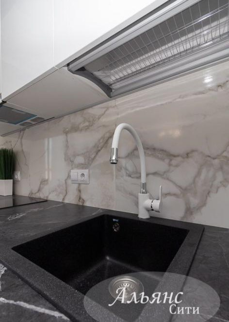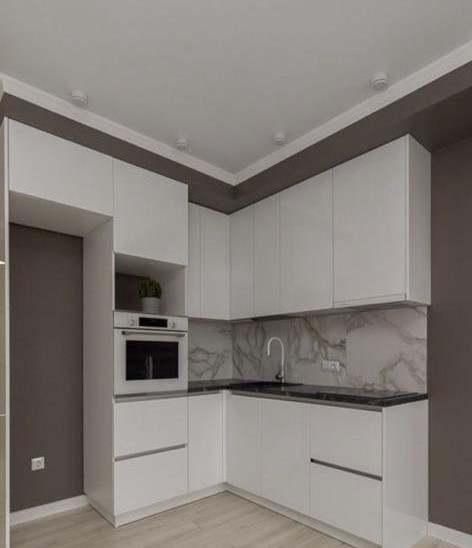 Светлый и очень вместительный кухонный гарнитур с красивыми качественными фасадами, со встроенной бытовой техникой (варочная поверхность, духовой шкаф, вытяжка), порадует любую хозяйку! Красивые качественные светильники, подсветка рабочей зоны, практичная качественная столешница, эффектные портьеры и тюль на окнах, шикарная люстра. Из зоны кухни выход на просторный балкон с французским остеклением «в пол».
