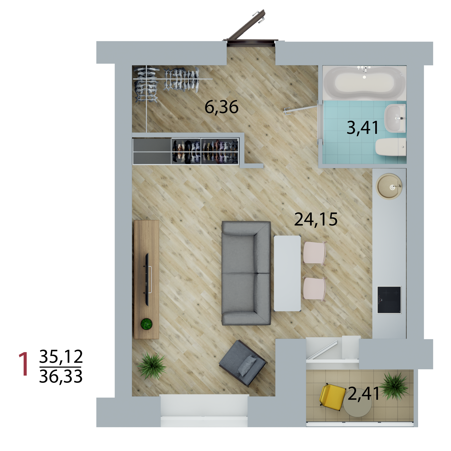 Общая площадь 36.33 м2