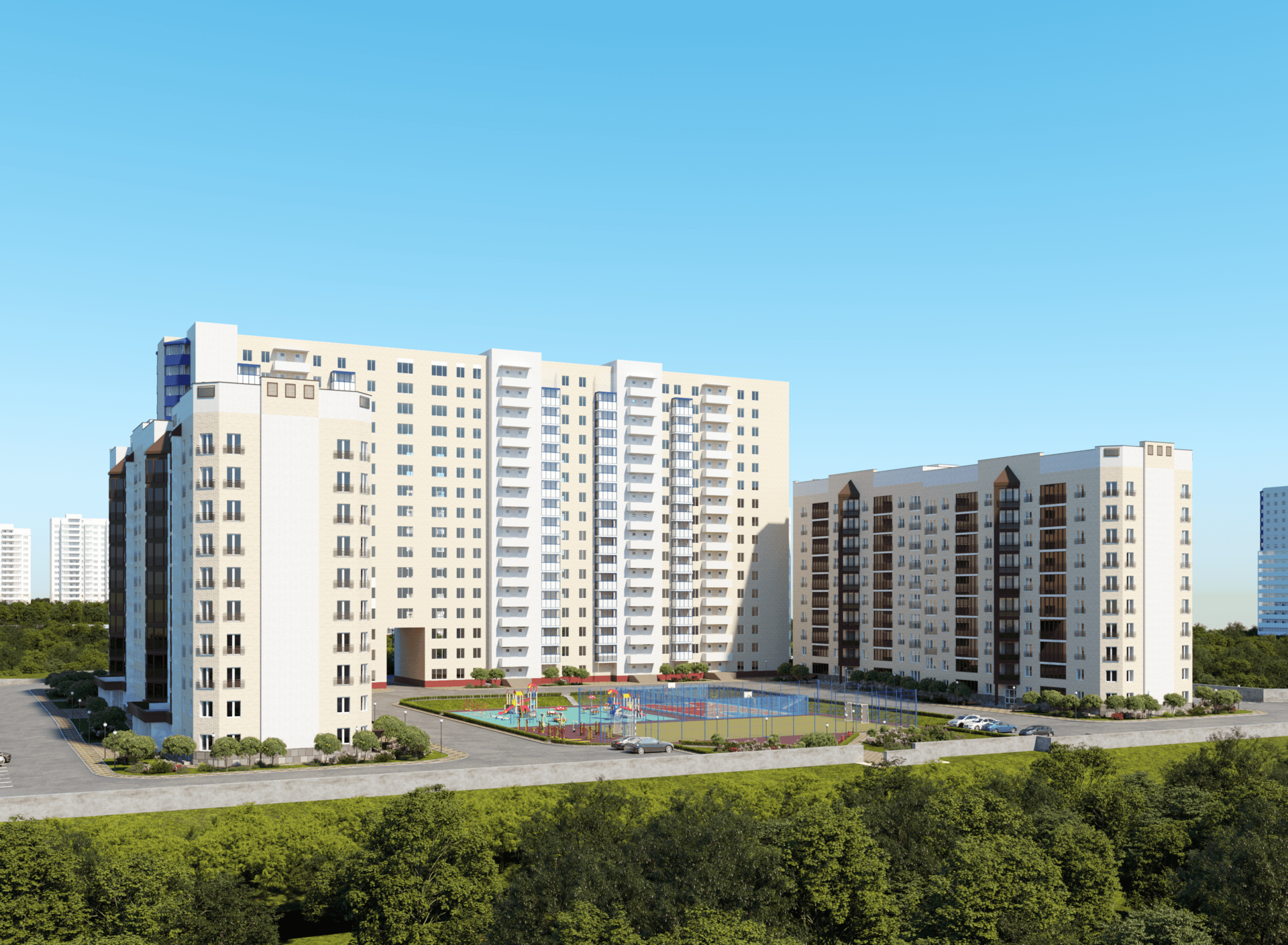 Благоустроенная, хорошо освещенная территория комплекса позволит вам проводить уютные вечера вместе с детьми, не отходя далеко от дома,безопасные детские площадки .