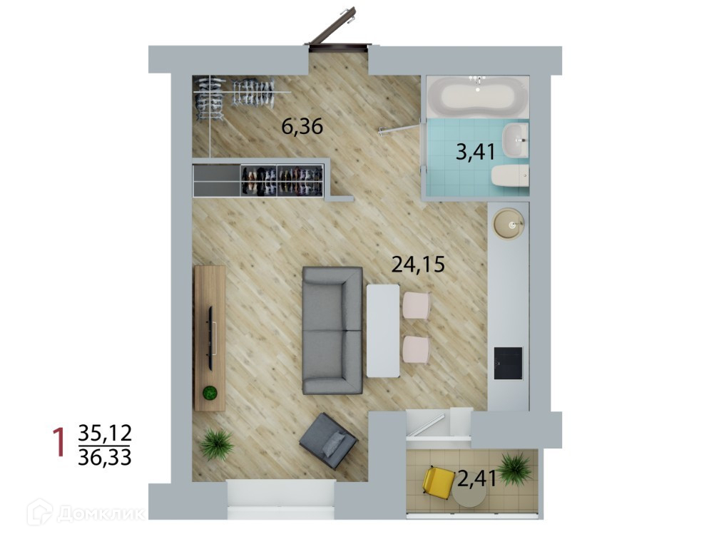 - В просторной кухне-студии 24,1 кв.м. хватит места для приема гостей!