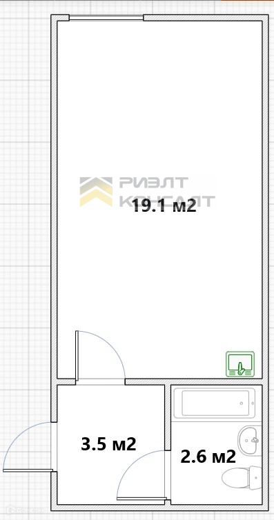 Жилая площадь 19.1 м2