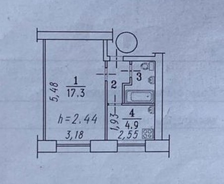 1-комнатная квартира, 27.5 м2, этаж 2 / 2, на продажу в Омске, Комсомольский проспект, 4
