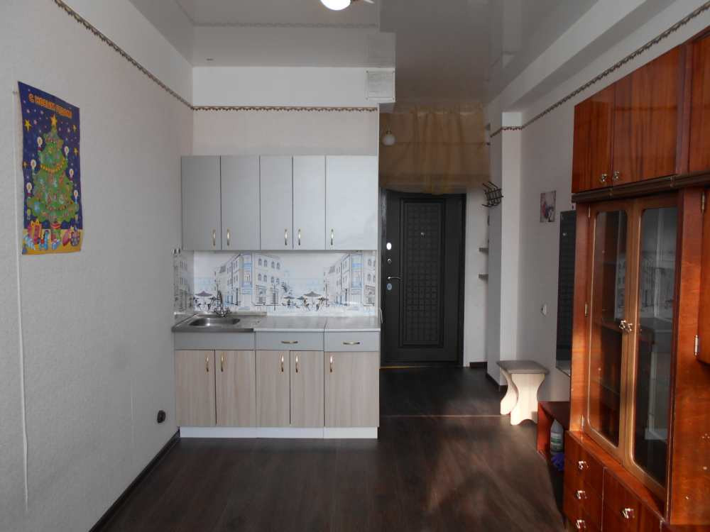 Квартира-студия  в отличном состоянии. Пластиковое окно,  натяжной потолок, качественная входная дверь, хороший линолеум, потолки 3 м. В ванной стеновые панели, на полу плитка. В квартире остается вся мебель: кухонный гарнитур, стенка, гардины, шторы, стиральная машинка автомат. Санузел совмещенный: душ, туалет. Чистый подъезд, хорошие соседи. Рядом детский сад, торгово-экономический колледж, ТК «Ермак». Остановка общественного транспорта «Мебельная фабрика» по 33 Северной. Район с хорошей транспортной доступностью, до центра 10 минут. Чистая продажа, документы готовы, подходит под ипотеку, материнский капитал.
