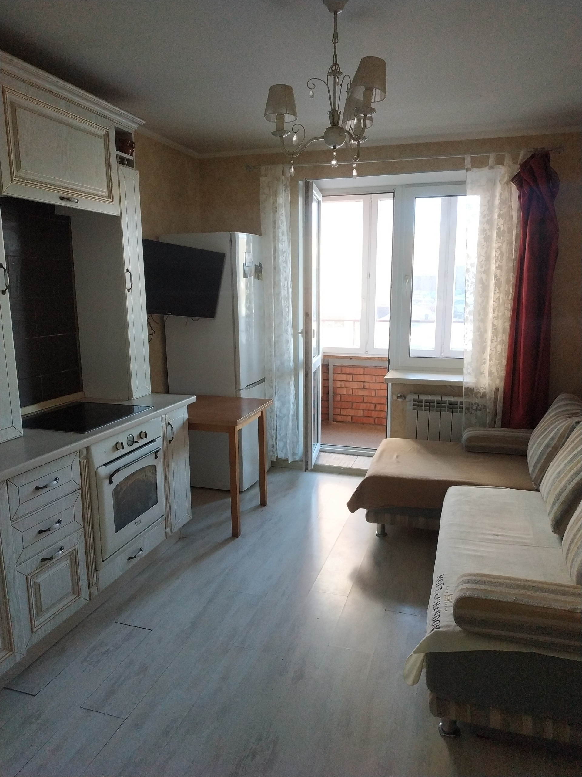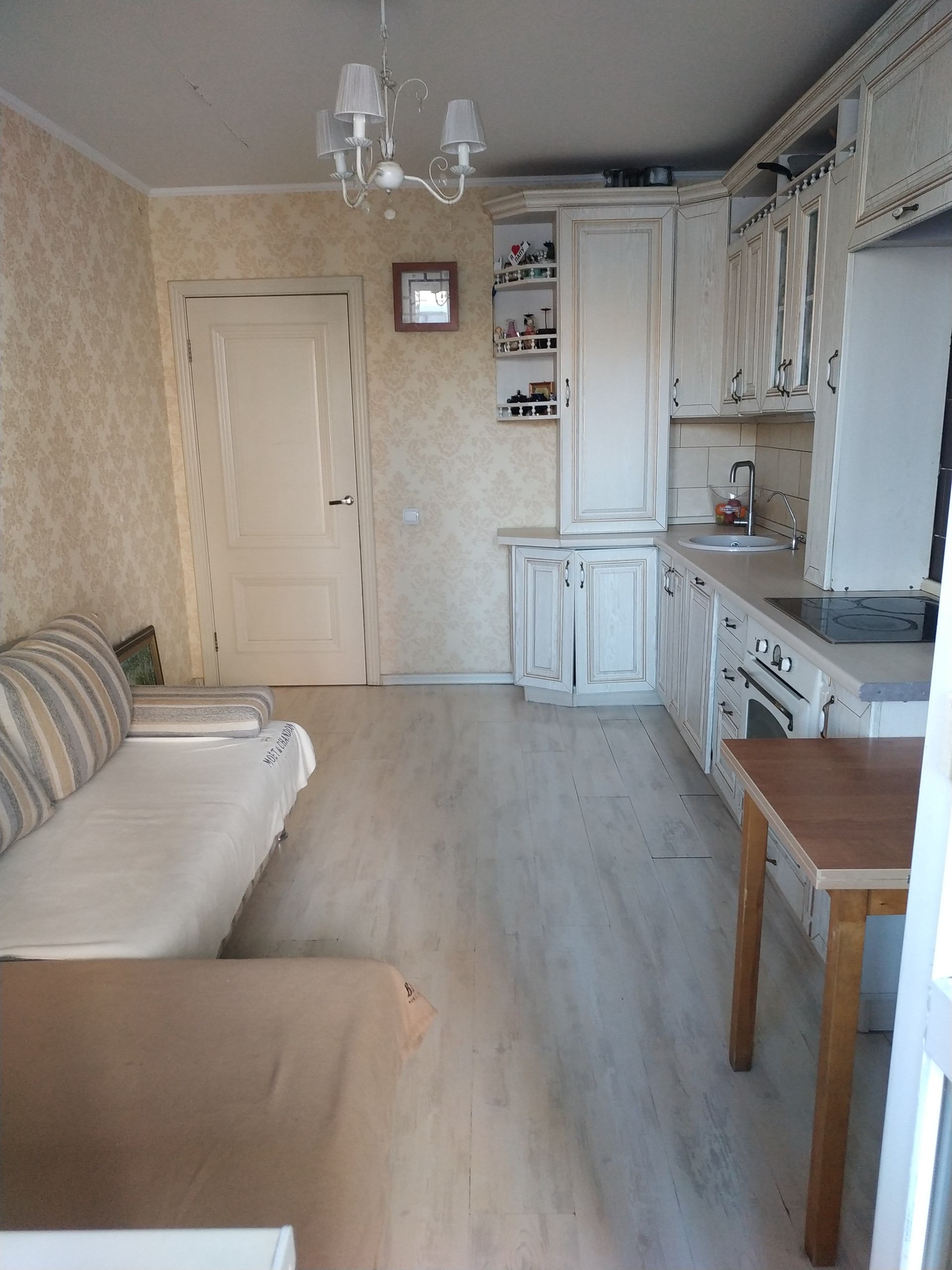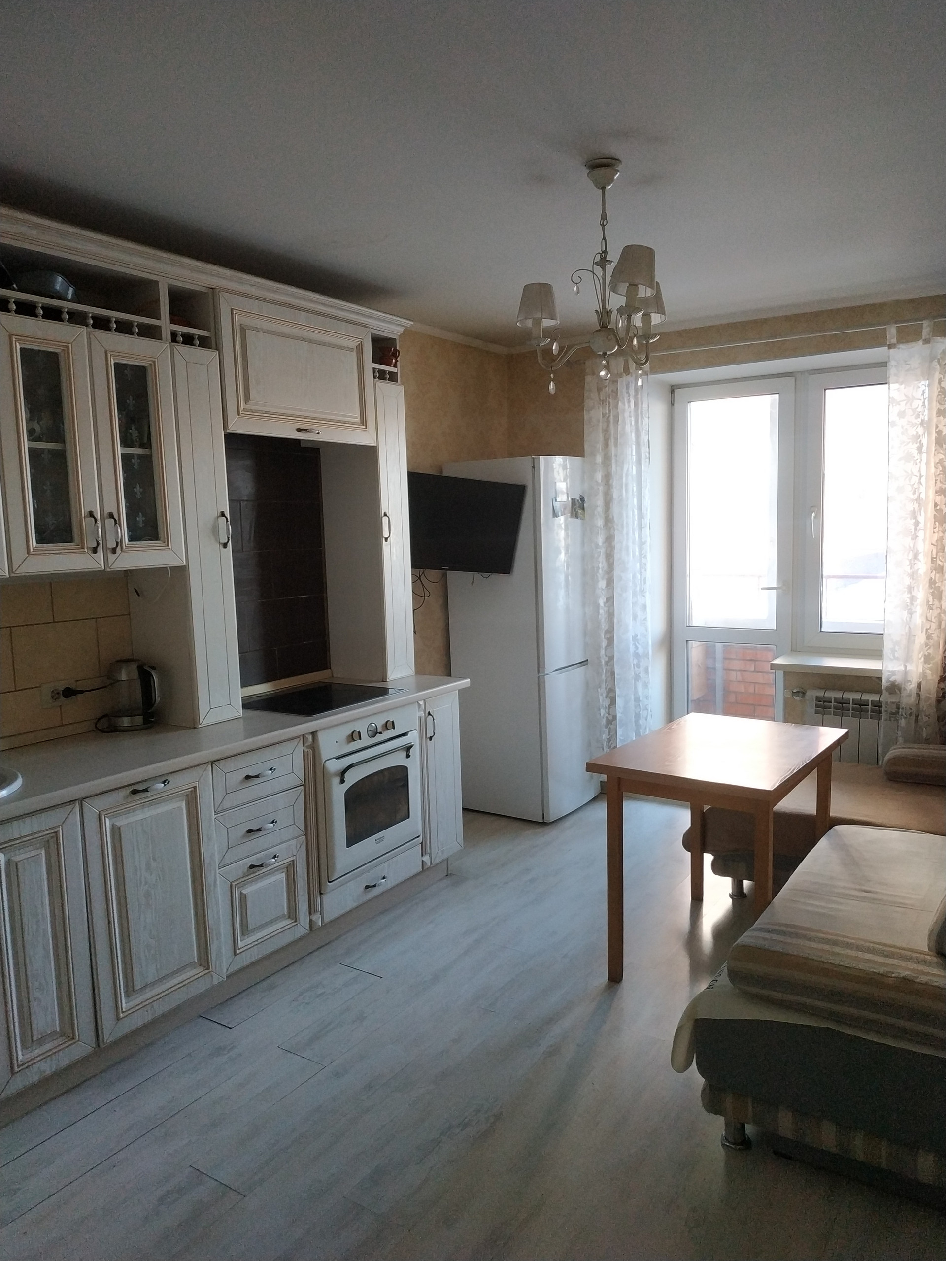 В квартире сделан ремонт, остается кухонный гарнитур, можем оставить всю мебель и технику в связи с перездом.