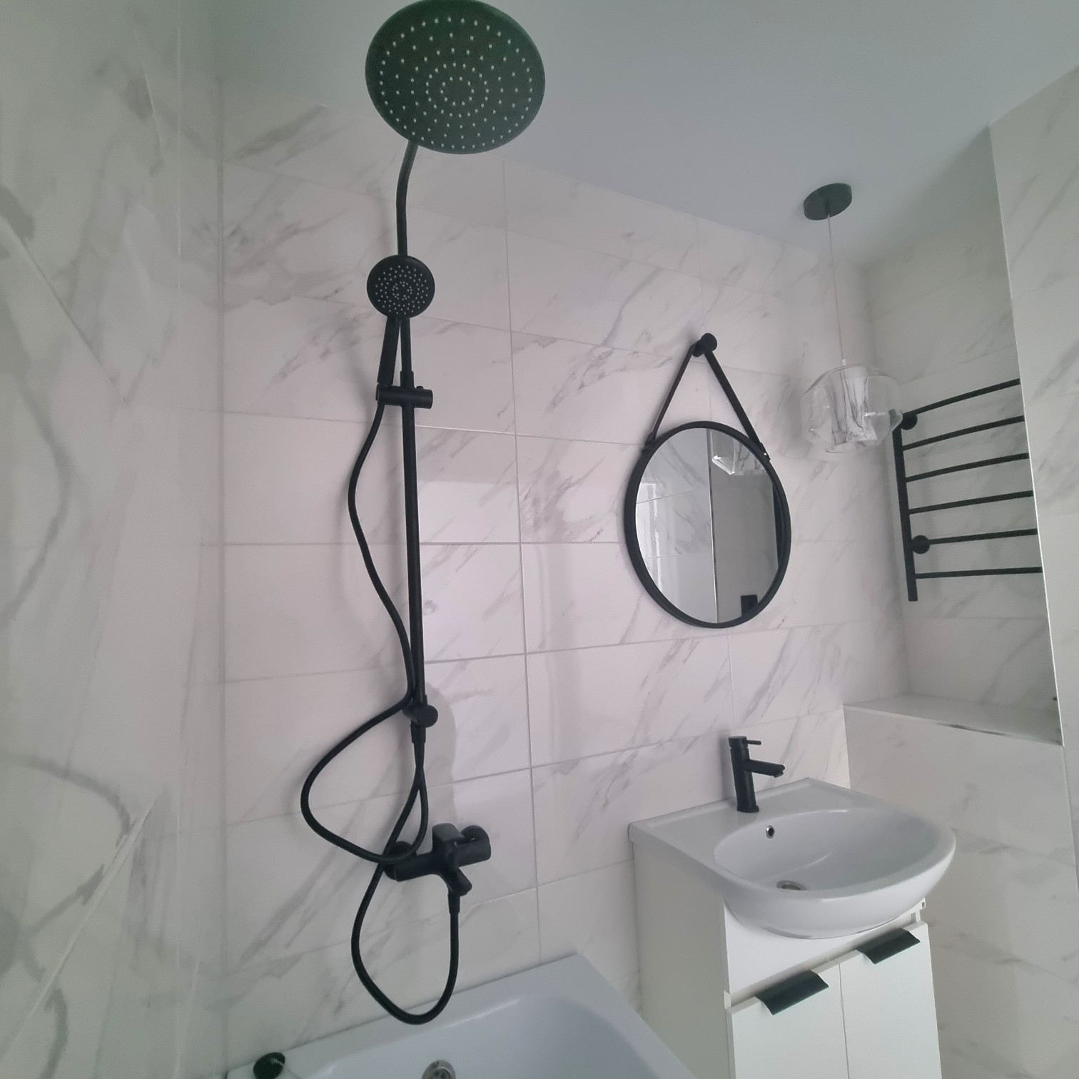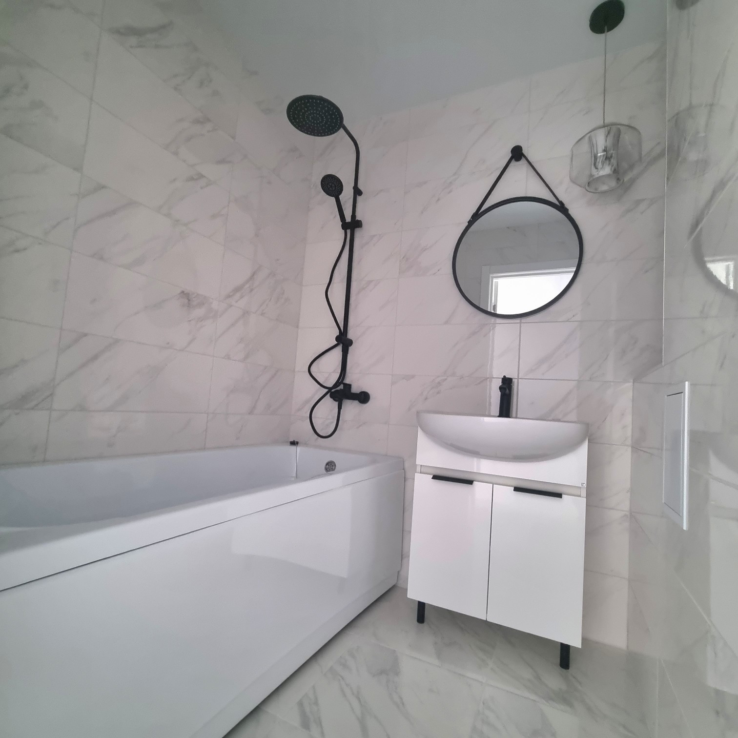 Сан.узел раздельный- кафель стены и пол, натяжные потолки(ванна, раковина-тумба с зеркалом).