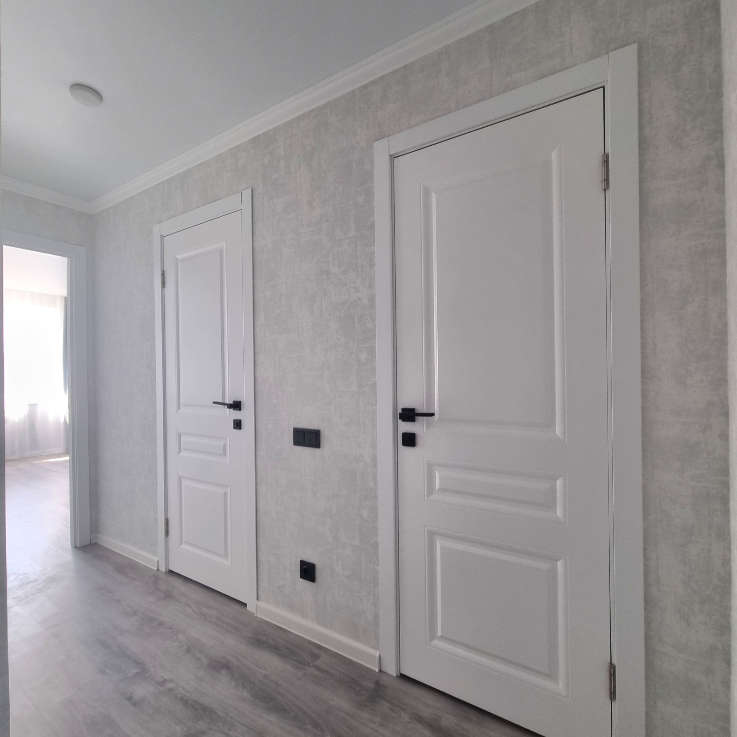 - натяжные потолки, ламинат, обои, двери, межкомнатные белая-эмаль