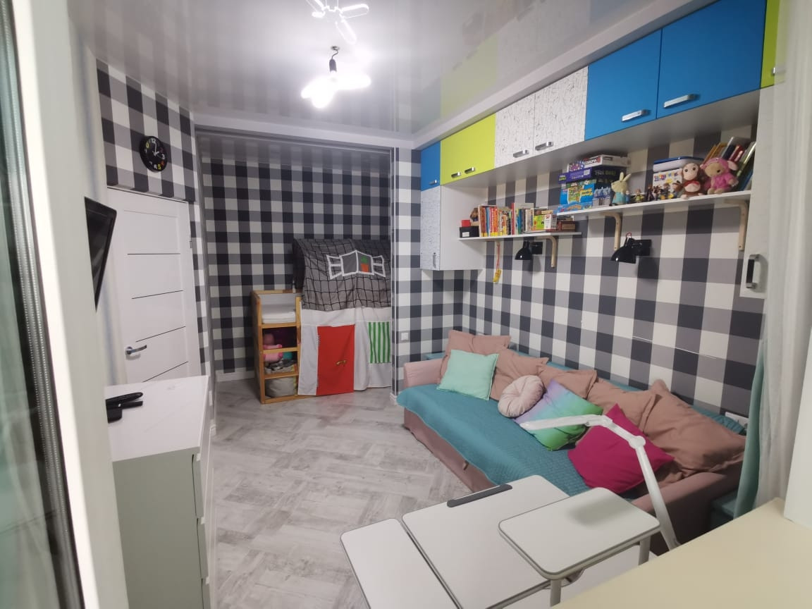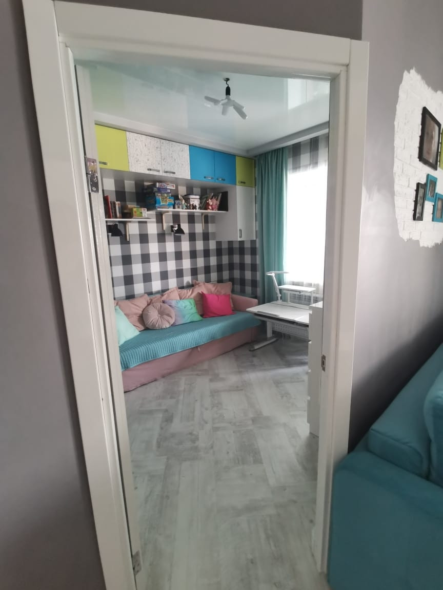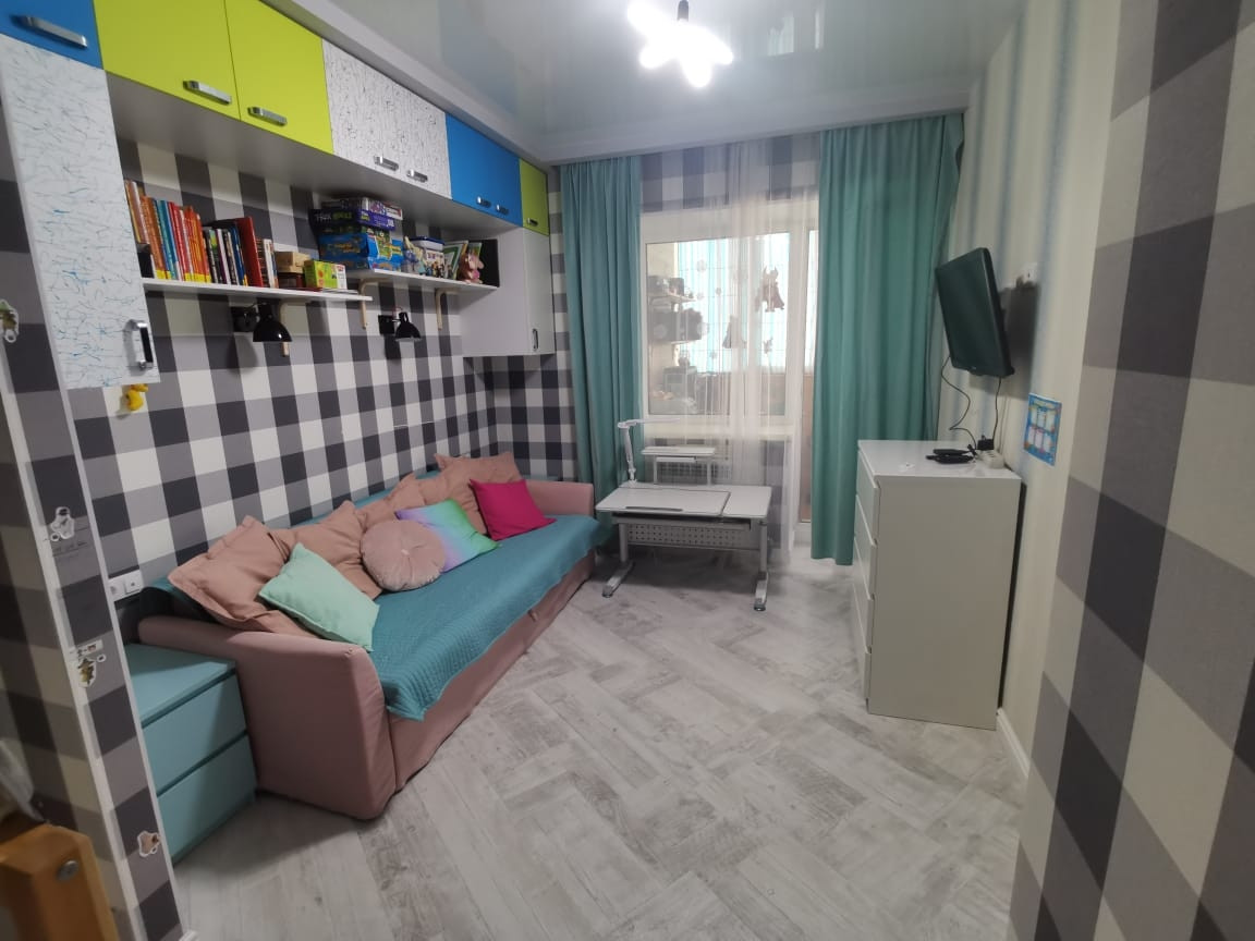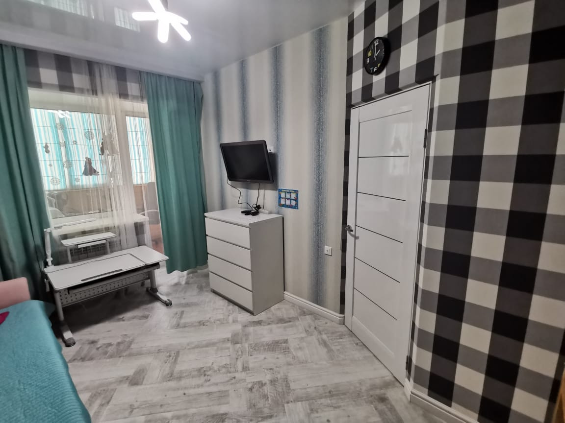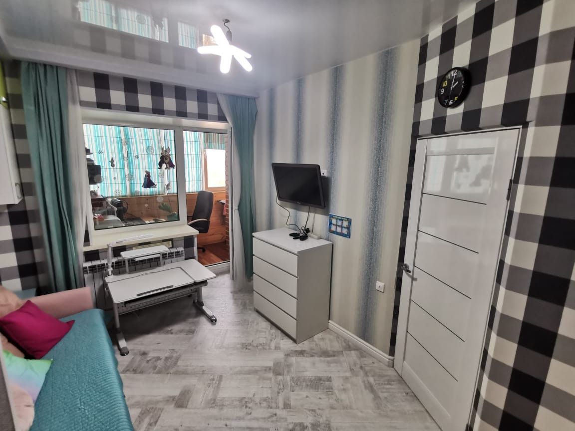 В квартире выполнен современный ремонт с использованием высококачественных материалов, стены и потолок выровнены (под покраску). Балкон утеплен (6 м2)  организована рабочая зона