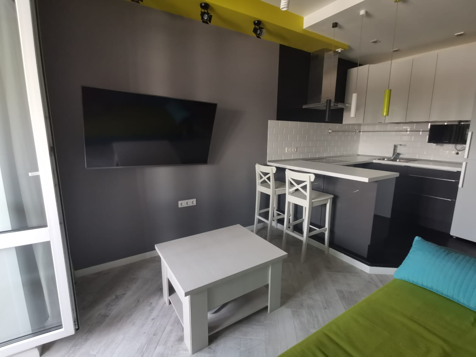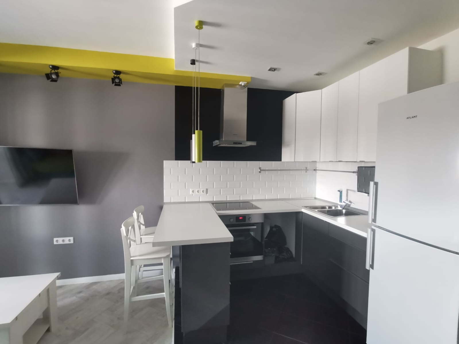 Кухня – студия с качественной мебелью, совмещена с гостиной.