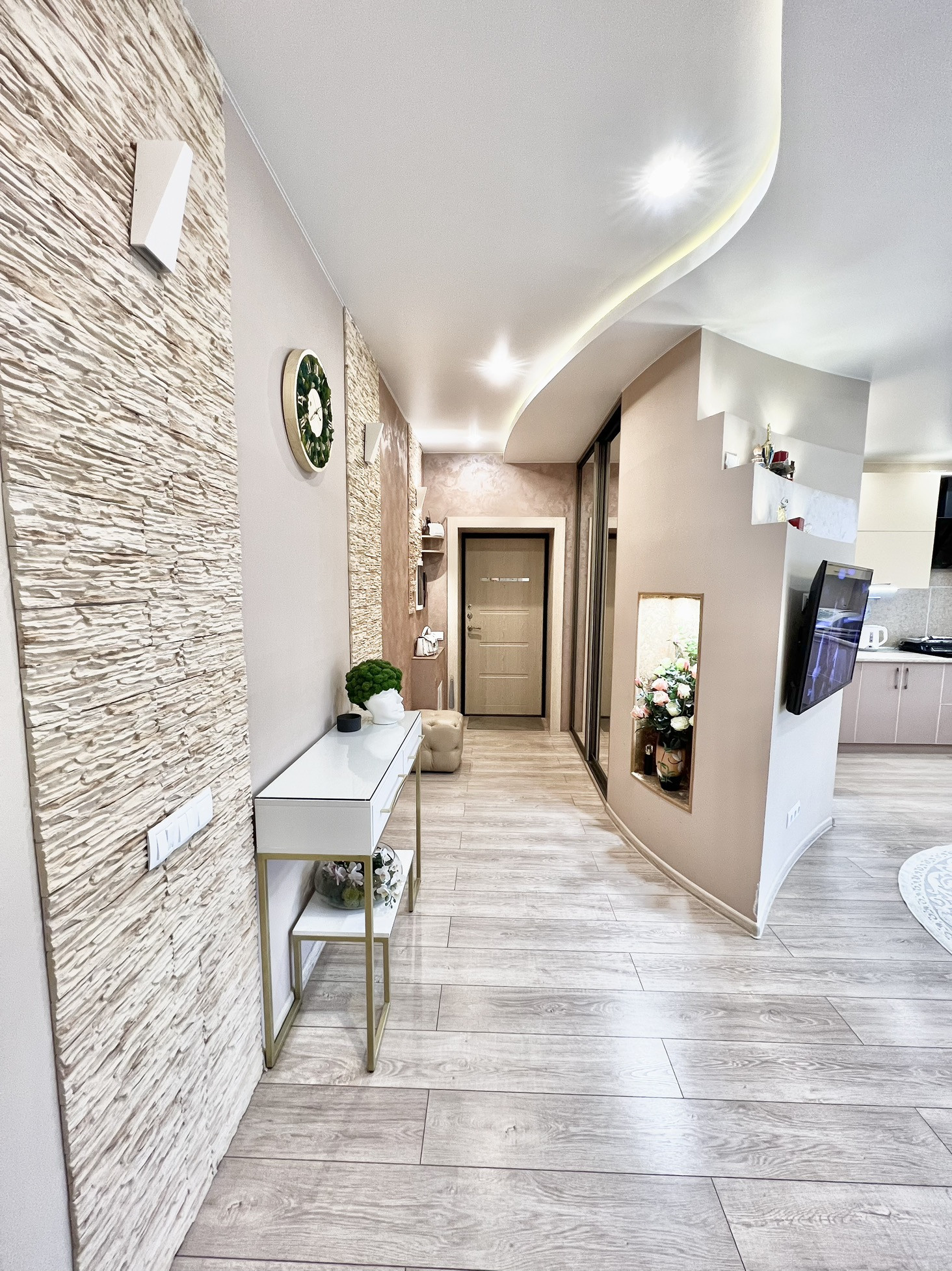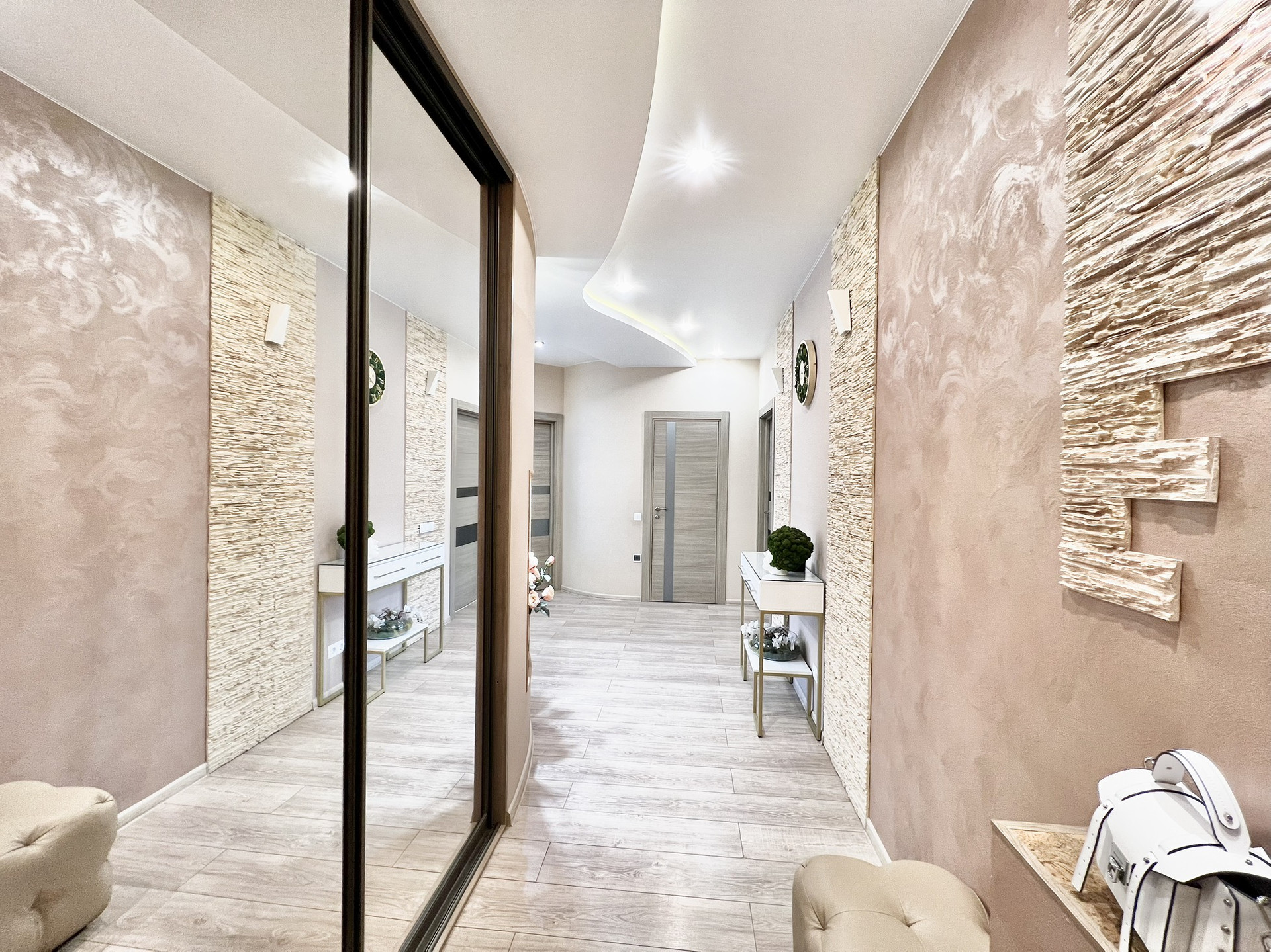 В квартире выполнен качественный дизайнерский ремонт с использованием дорогих  материалов.