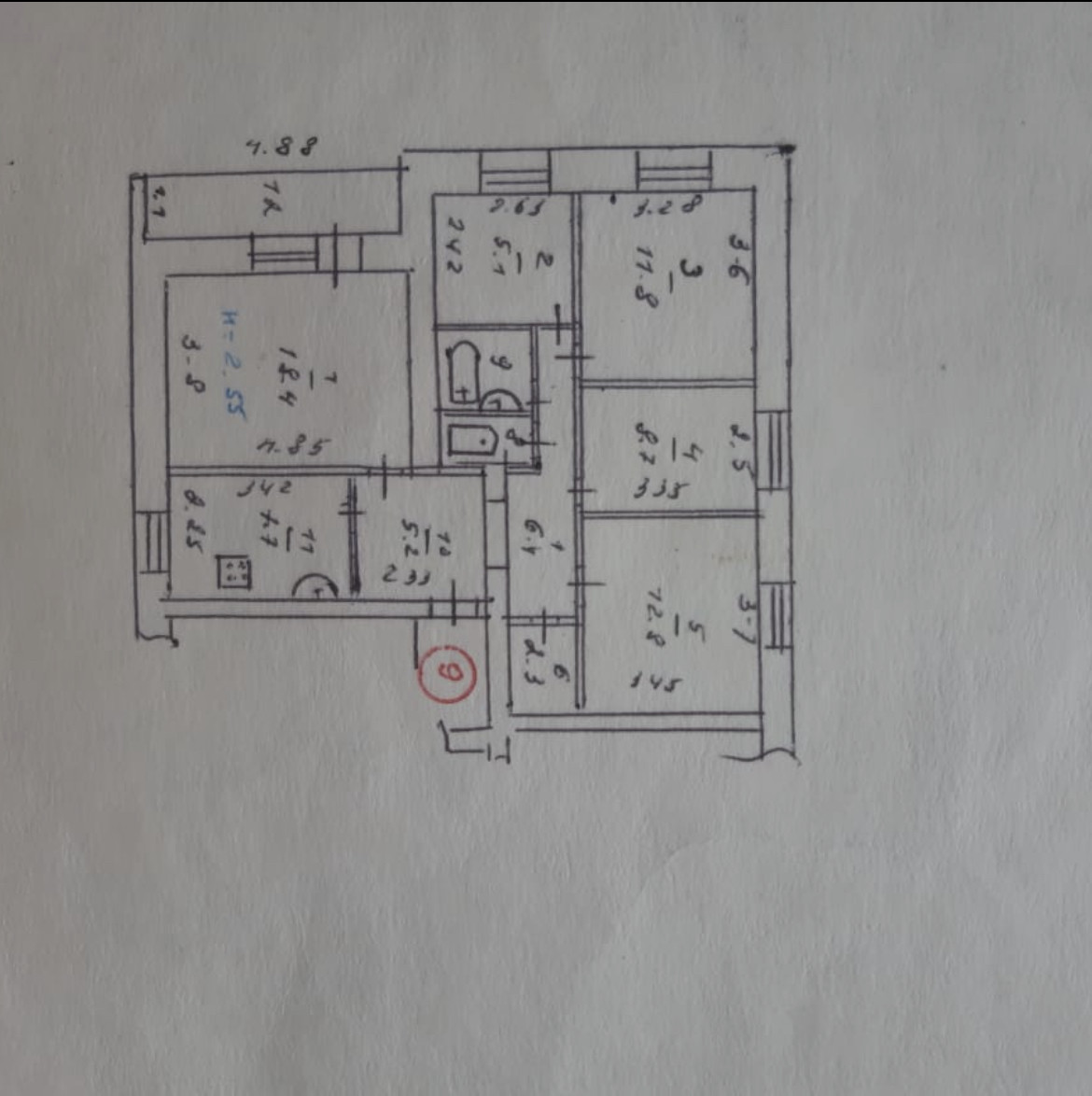 Высота потолков 2.55 м