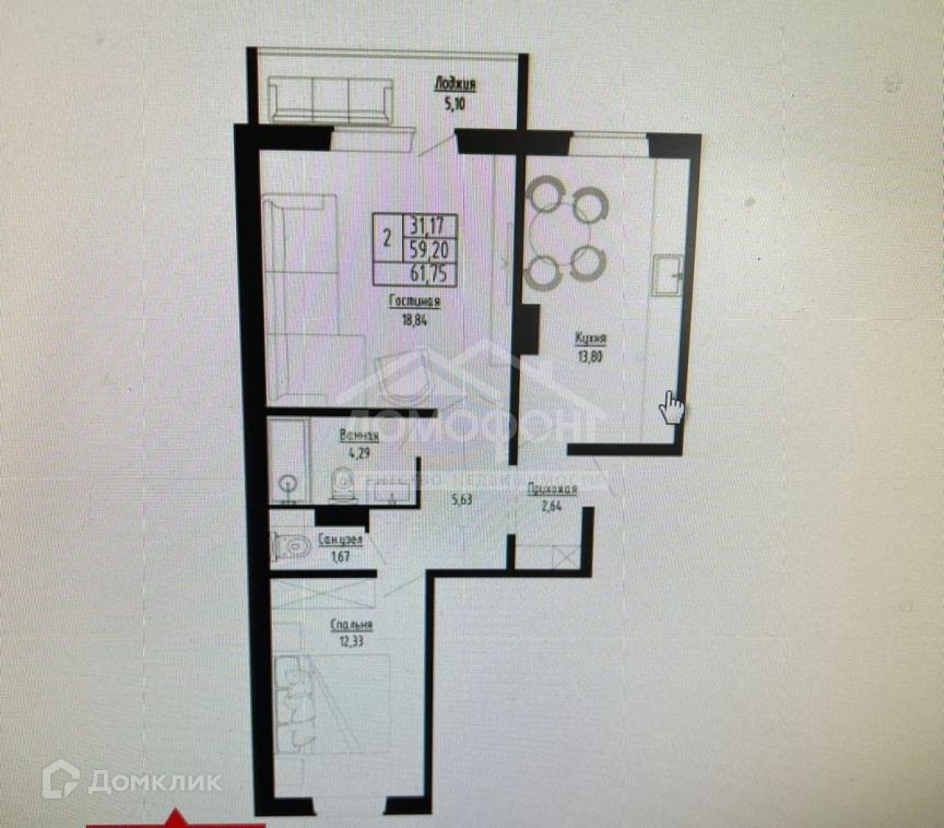 Общая площадь 62 м2