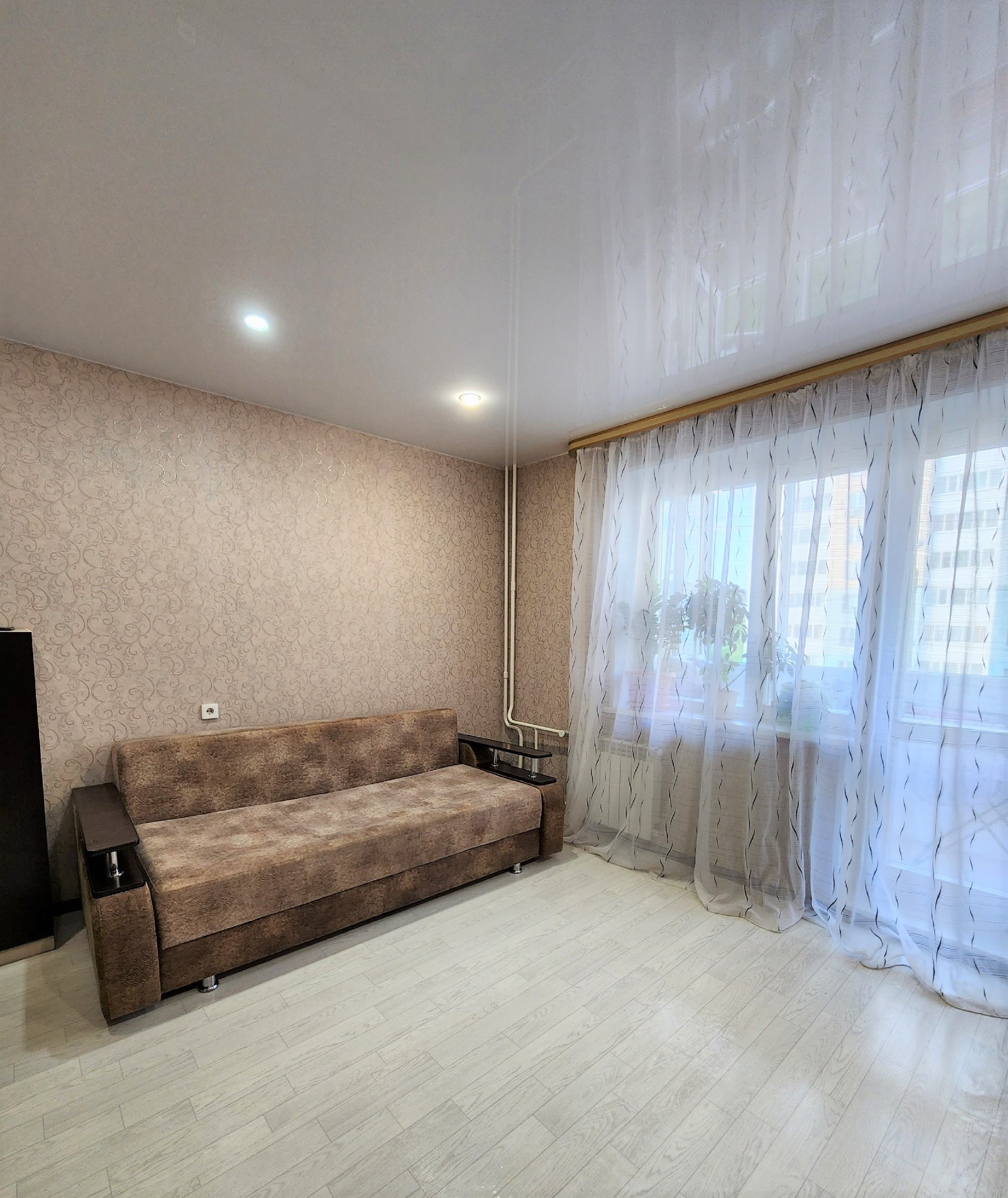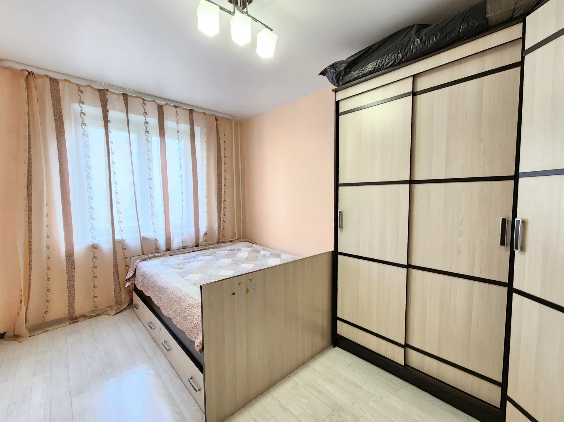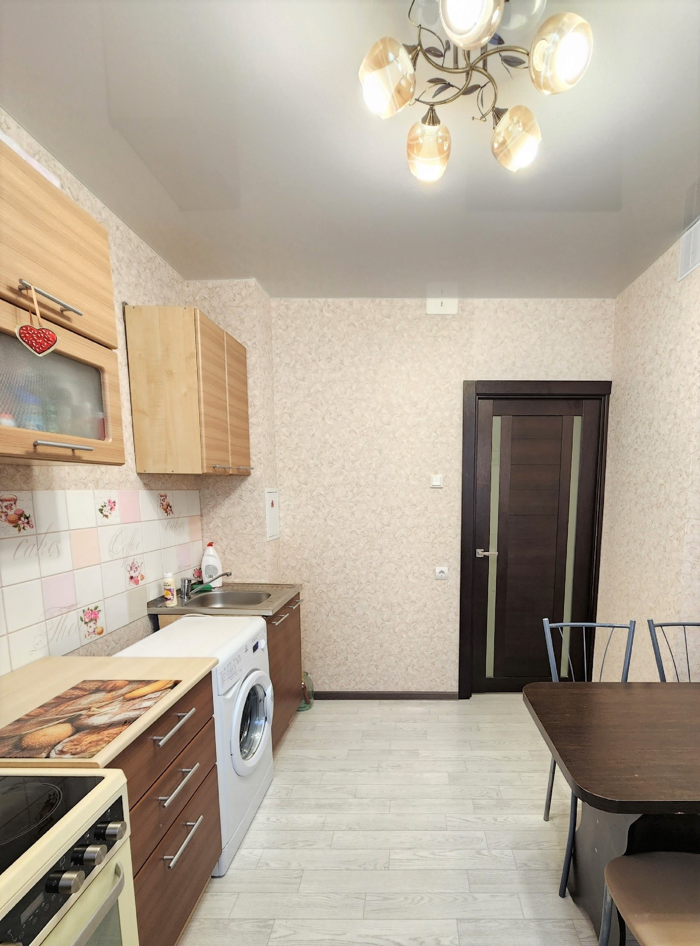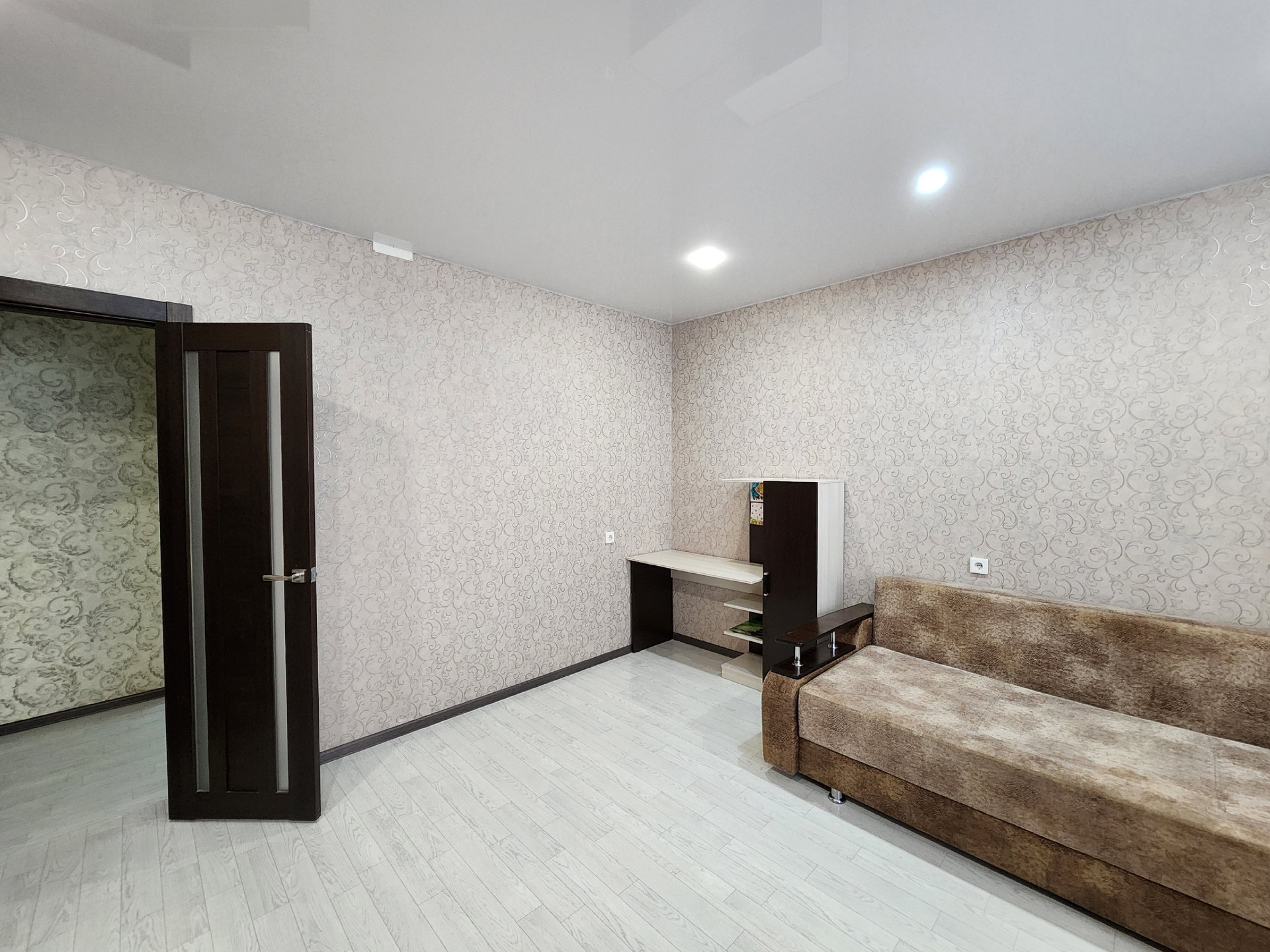 В квартире сделан ремонт. Наклеены современные обои. Двери в едином стиле. Установлены счетчики на воду.