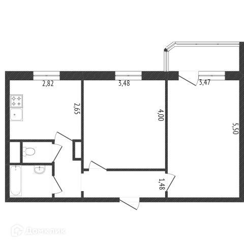 Общая площадь 52.2 м2