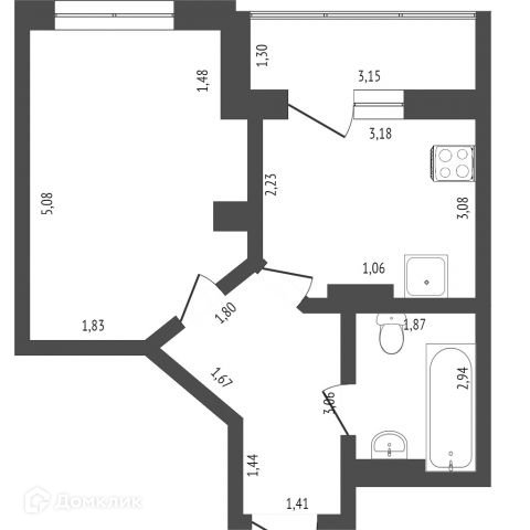 Санузел совмещен, установлена душевая кабина, имеются все счетчики.