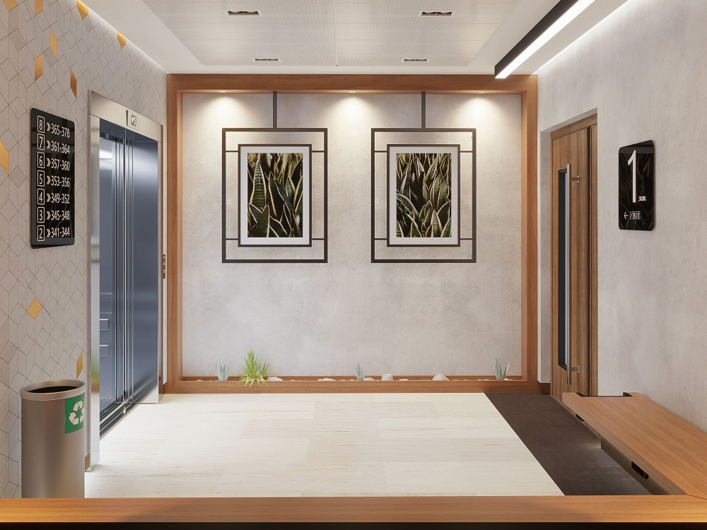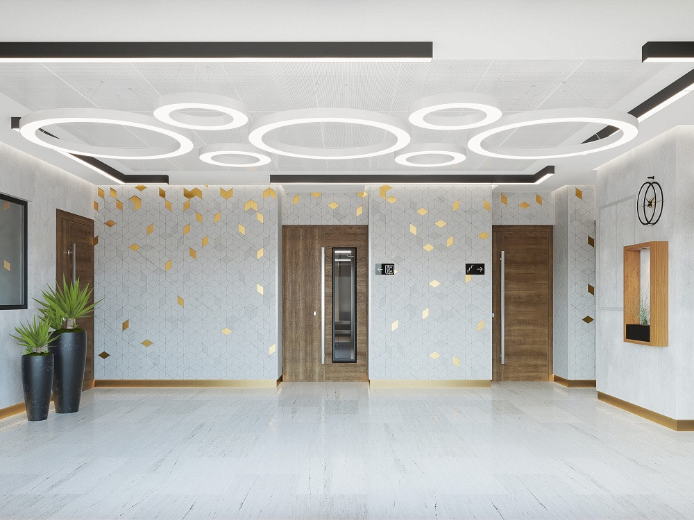 - Современный стильный дизайн отделки мест общего пользования;