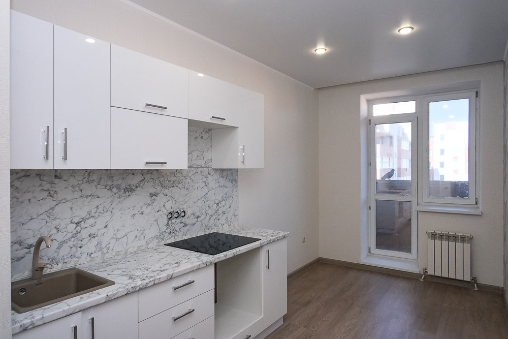 В квартире выполнен свежий современный ремонт. Потолки, стены и полы идеально ровные, санузел в кафеле, окна ПВХ, коммуникации в отличном состоянии, установлены приборы учета. На кухне установлен новый гарнитур с варочной панелью.