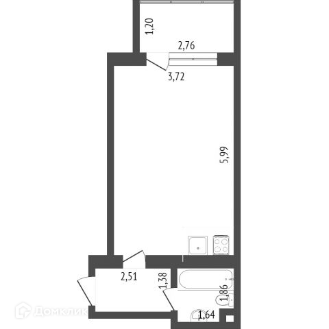 Общая площадь 28.6 м2