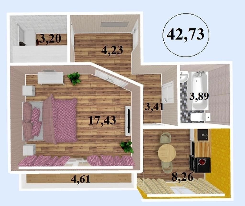Общая площадь 43 м2