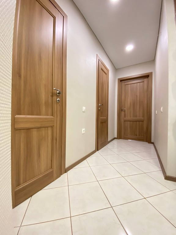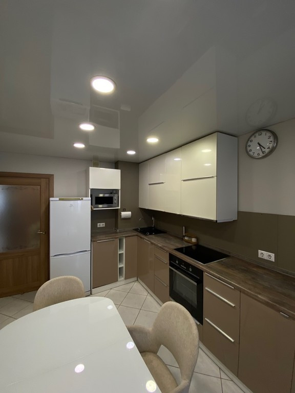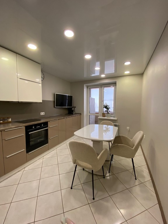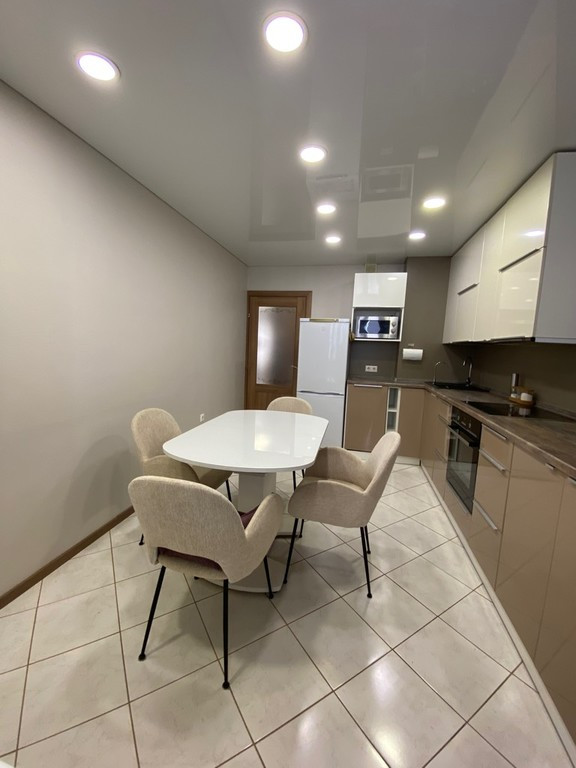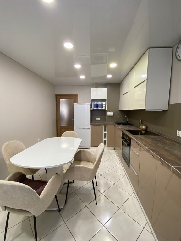 В квартире выполнен современный ремонт, трубопроводы и электропроводка выполнены надежными материалами. Кухонный гарнитур индивидуальный, с удобным зонированием, оснащен встроенными плитой, духовкой, посудомоечной машиной и системой очистки питьевой воды.
