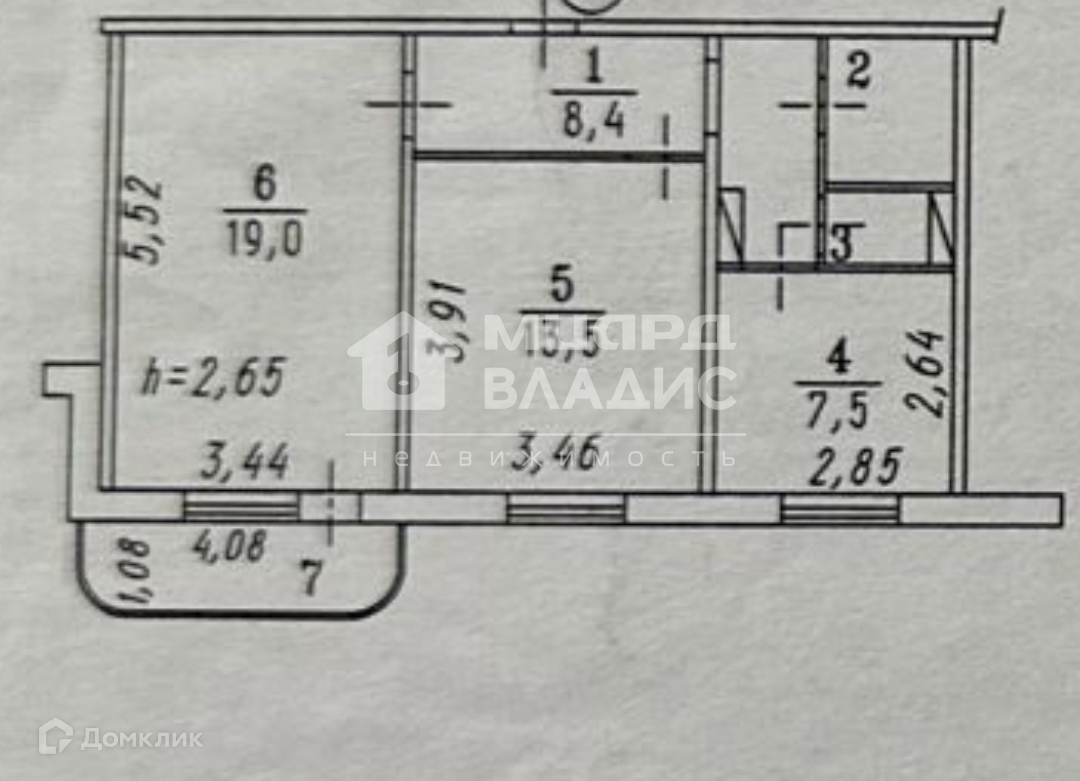 Высота потолков 2.64 м