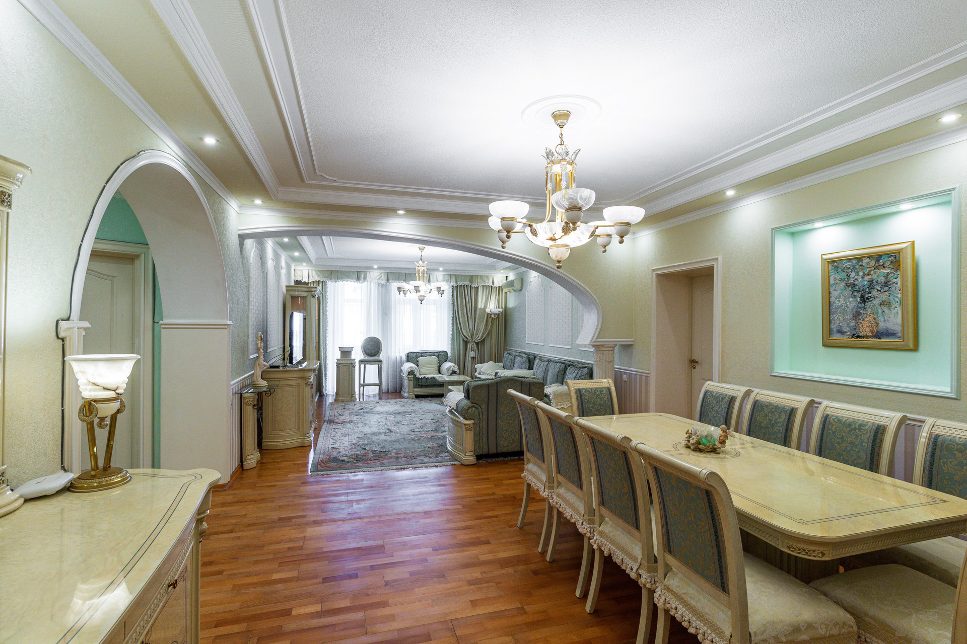 В квартире выполнен качественный ремонт в современном стиле, установлены все приборы учета, 3 спальни, кабинет-гардеробная, 2 санузла, 2 балкона, 1 лоджия.