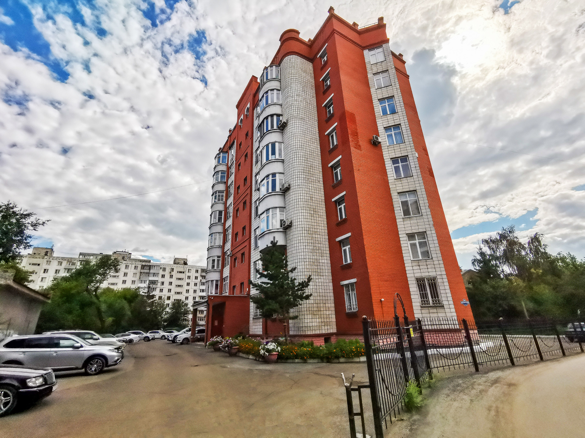 Тихое место, во дворе много зелени,  парковочное место за дополнительную плату в размере 250тр! Территория дома огорожена забором со шлагбаумом, имеется консьерж.