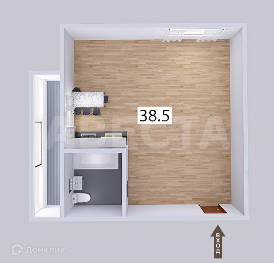 Жилая площадь 38.5 м2
