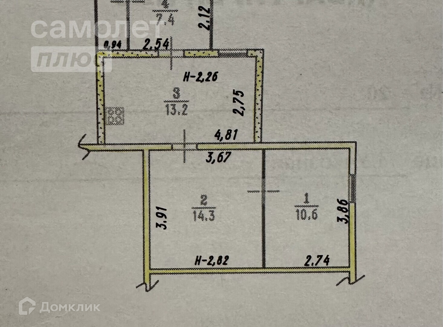 Высота потолков 2.82 м