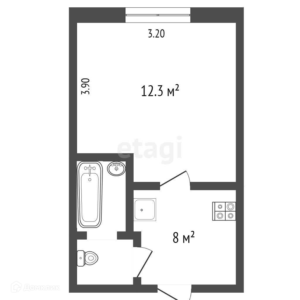 Общая площадь 17.3 м2