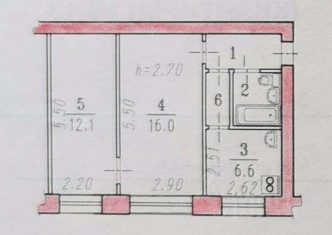 Площадь кухни 6.6 м2