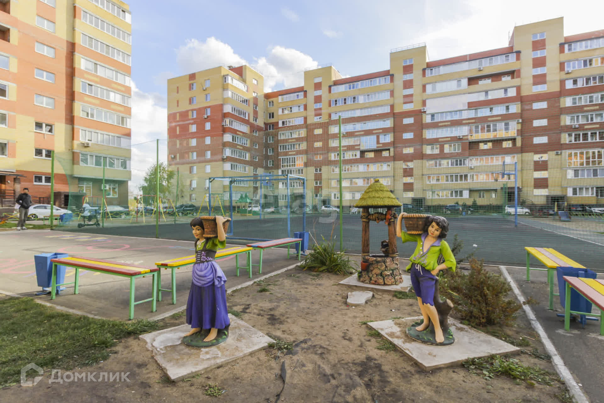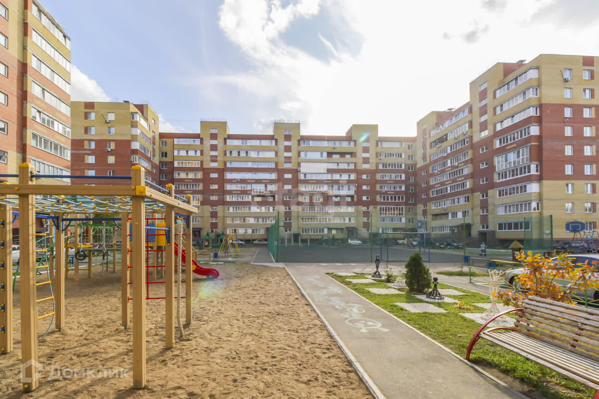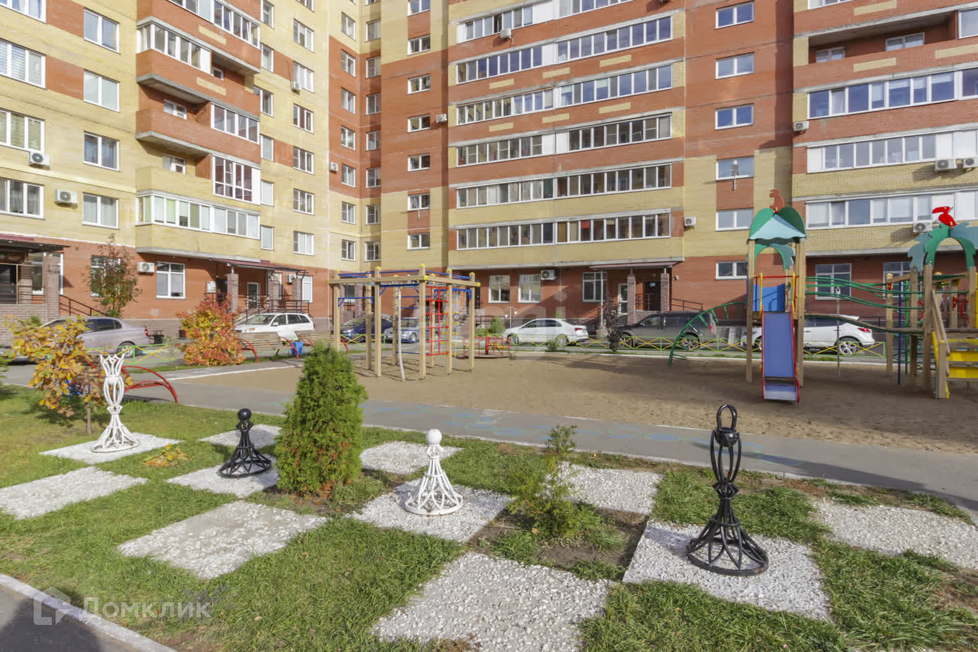 Во дворе большая, современная детская площадка для детей разного возраста. По периметру дома много парковочных мест, ведётся круглосуточное видеонаблюдения.