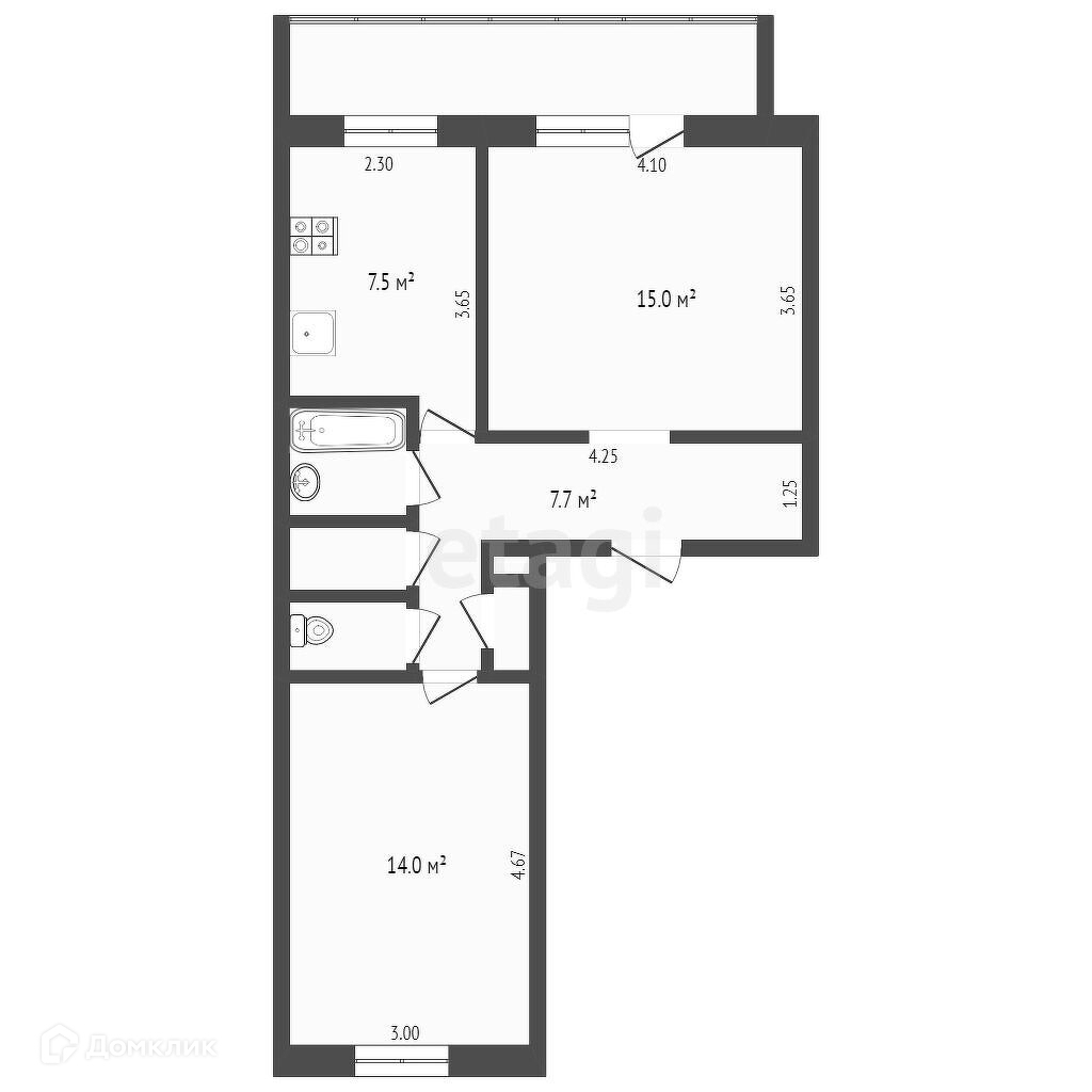 Балкон, лоджия 1 балкон