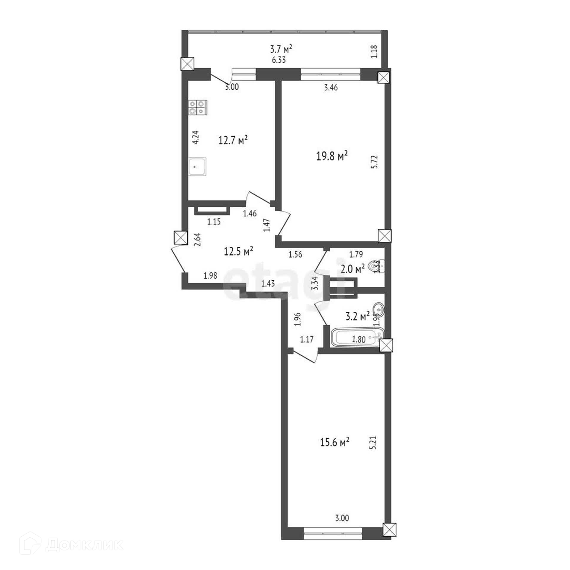2-комнатная квартира, 70 м2, этаж 7 / 9, на продажу в Омске, Пригородная улица, 23к3