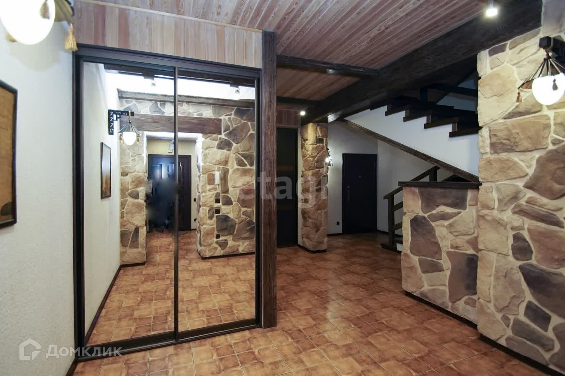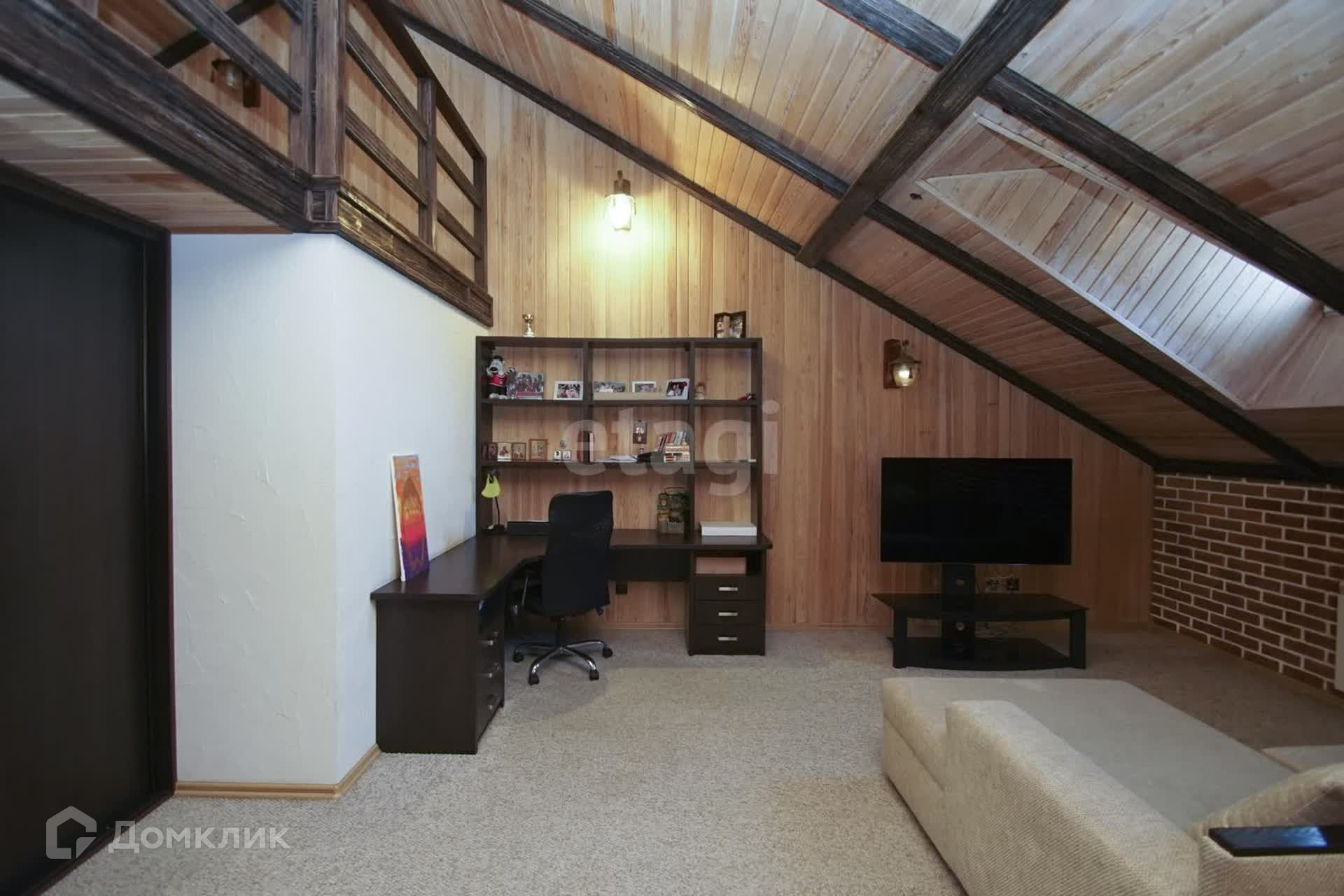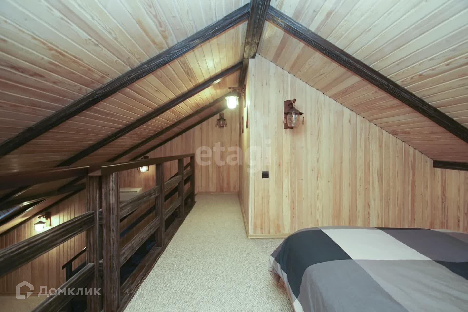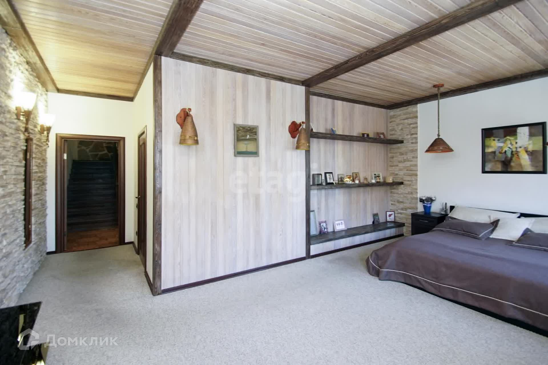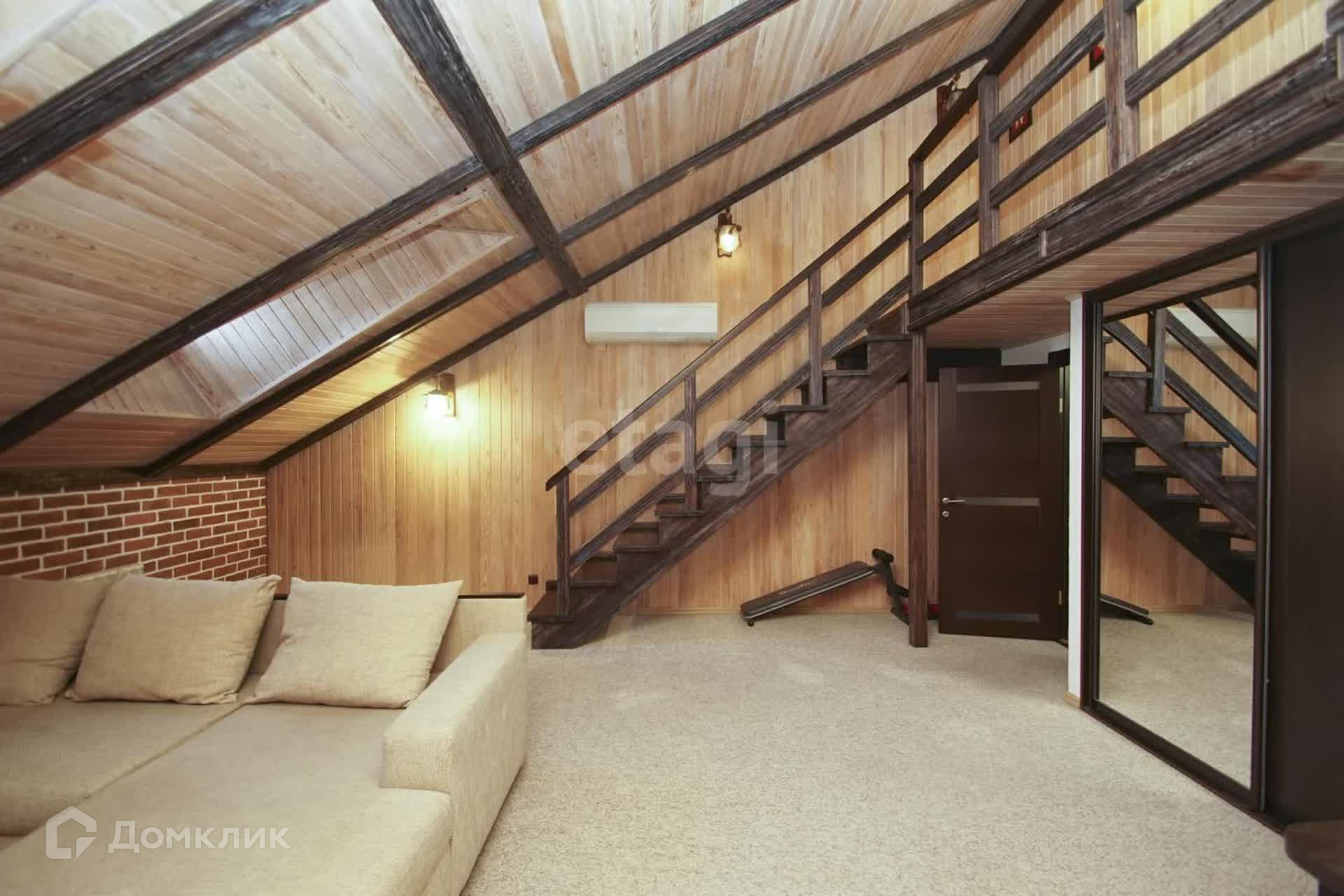 Второй этаж гостиная + кухня. Встроенный кухонный гарнитур из итальянского массива, кондиционер, бытовая техника. Стены- декоративная штукатурка, на потолке балки из брошированной и патенированной сосны. В доме три санузла. Вся сантехника немецкая.