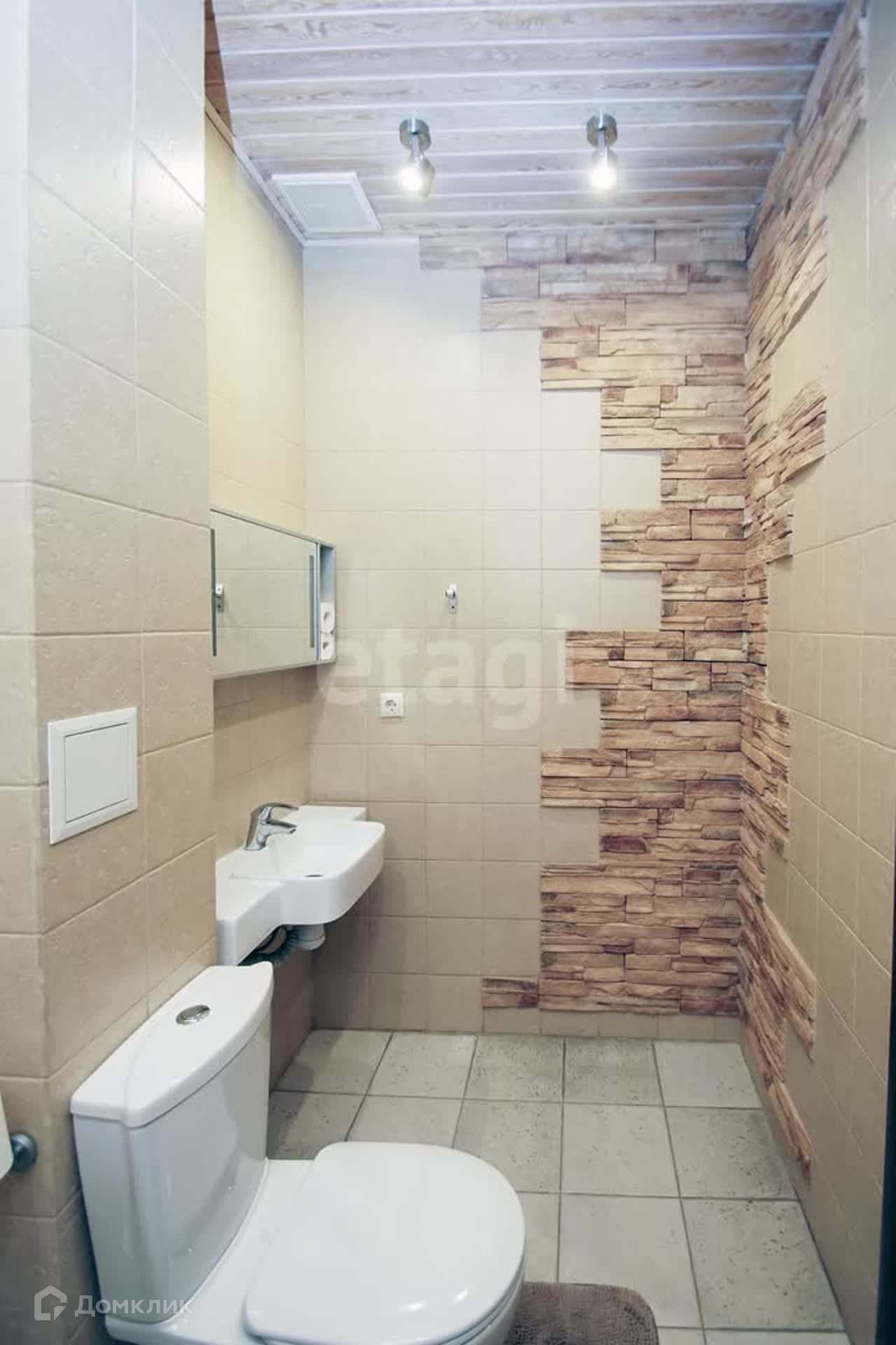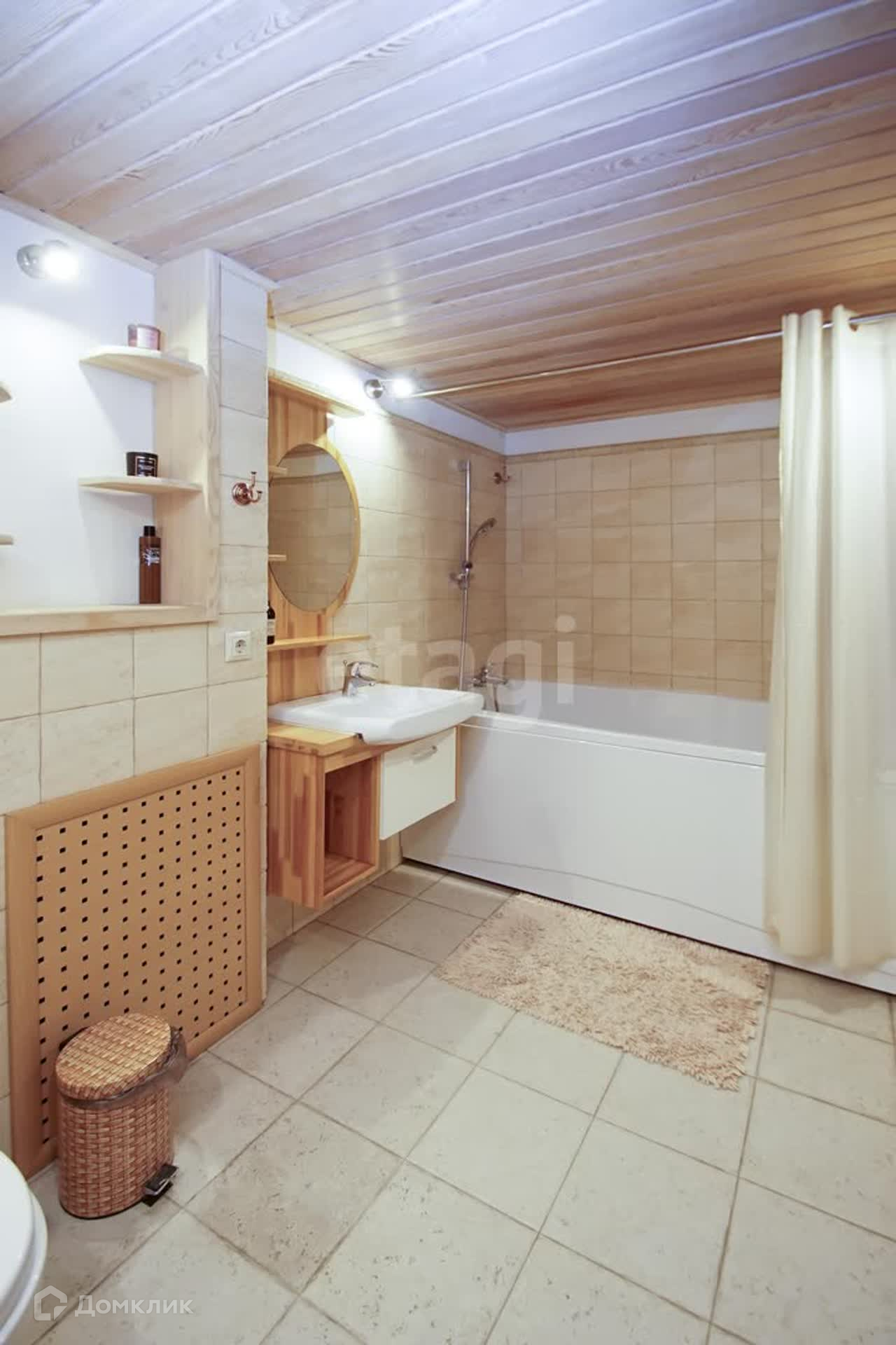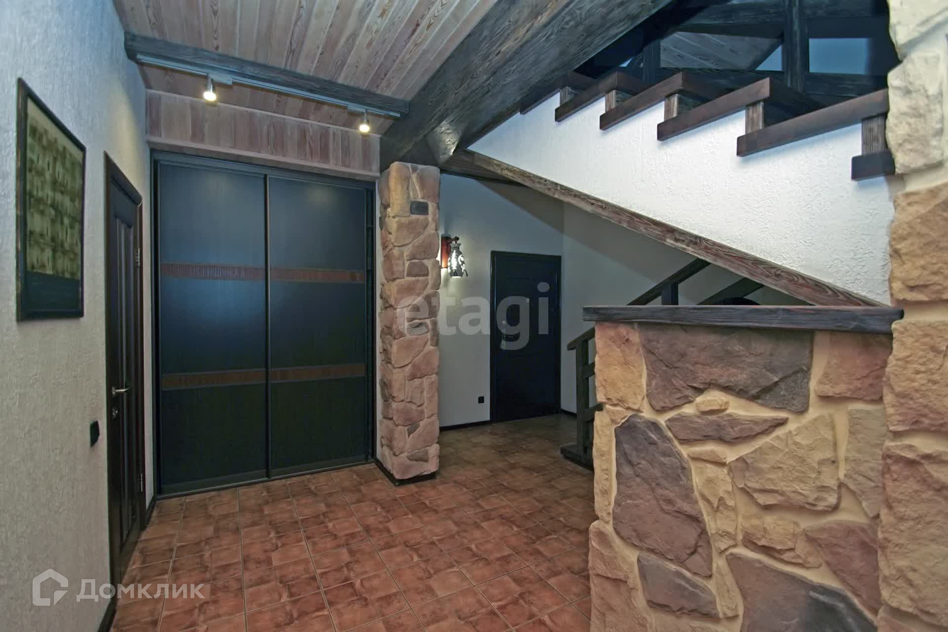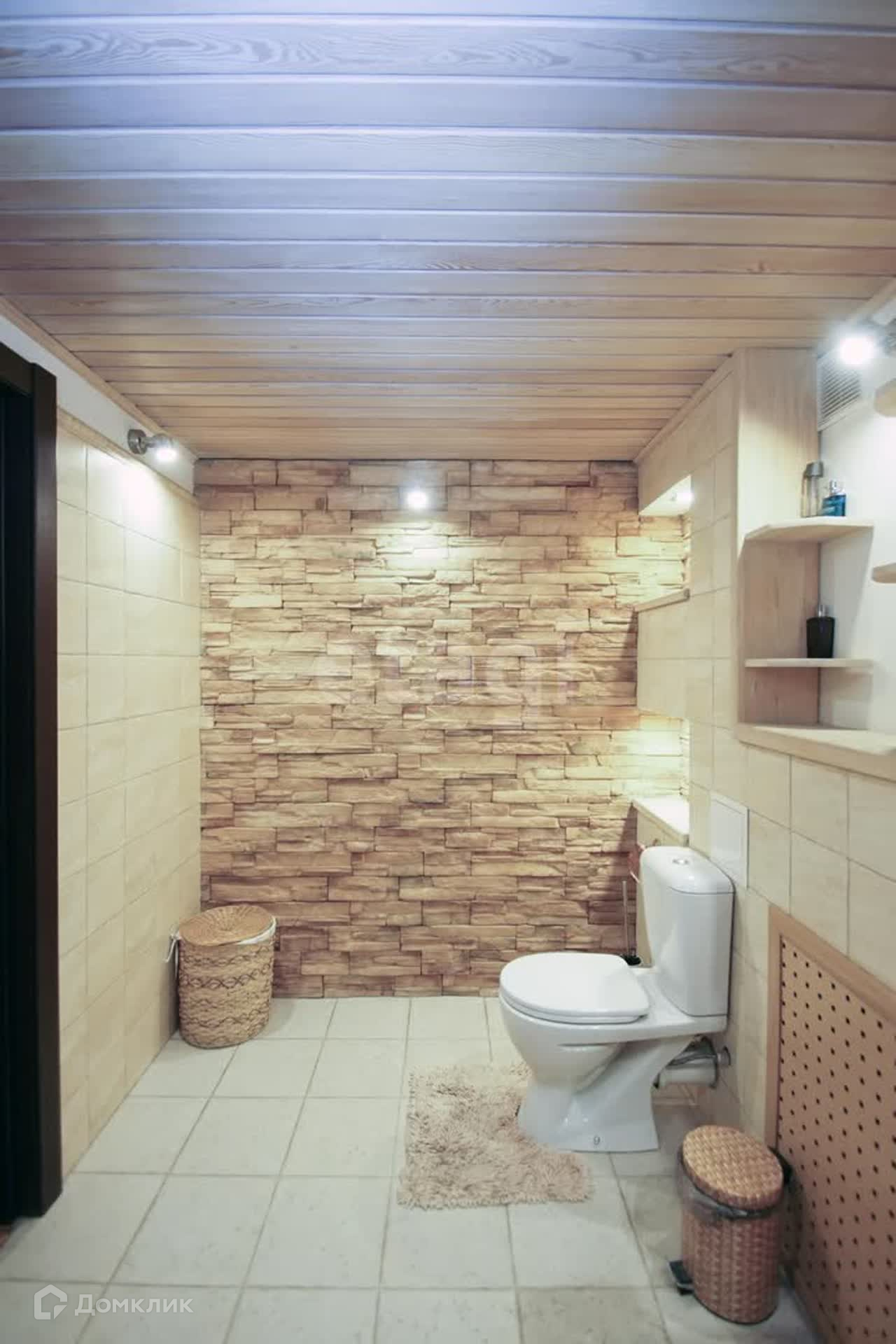 Второй этаж гостиная + кухня. Встроенный кухонный гарнитур из итальянского массива, кондиционер, бытовая техника. Стены- декоративная штукатурка, на потолке балки из брошированной и патенированной сосны. В доме три санузла. Вся сантехника немецкая.