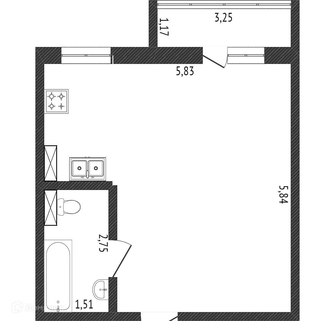 Свободная планировка. Высокие потолки, вместительный балкон.