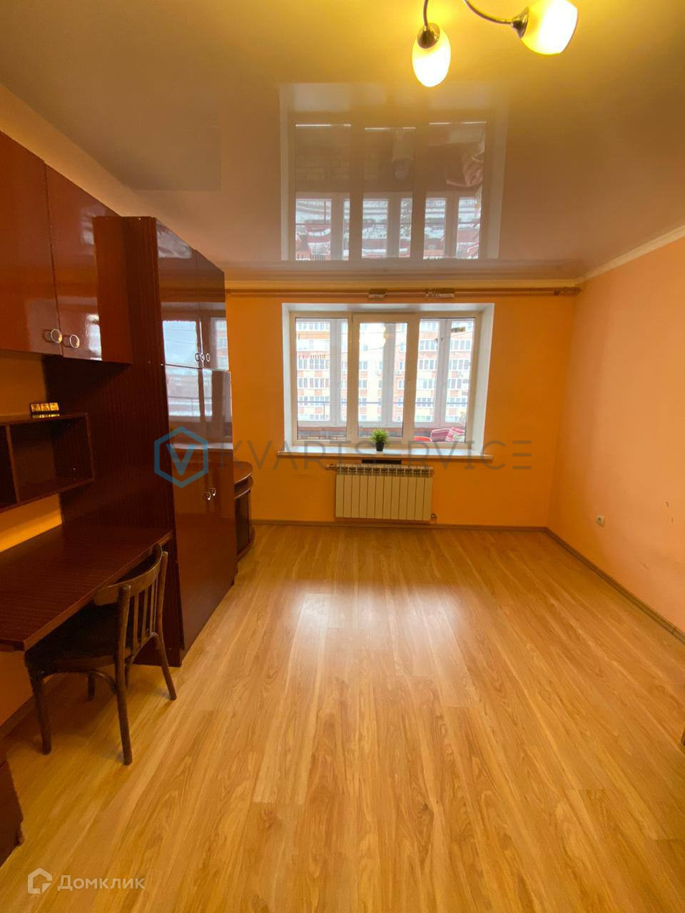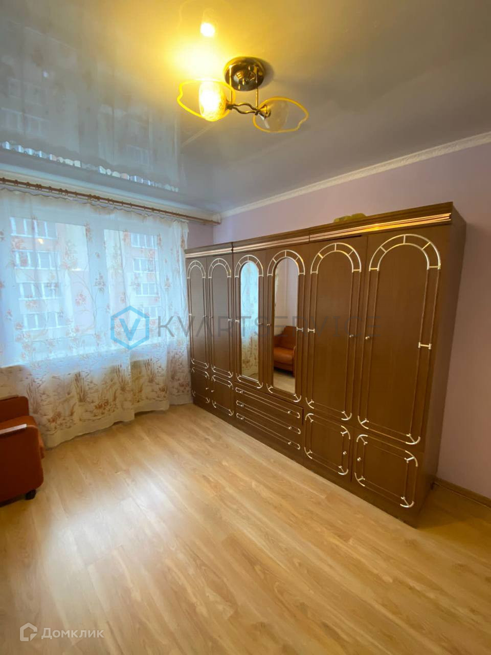 В квартире выполнен косметический ремонт, натяжные потолки, на полу ламинат, санузел облицован кафелем.
